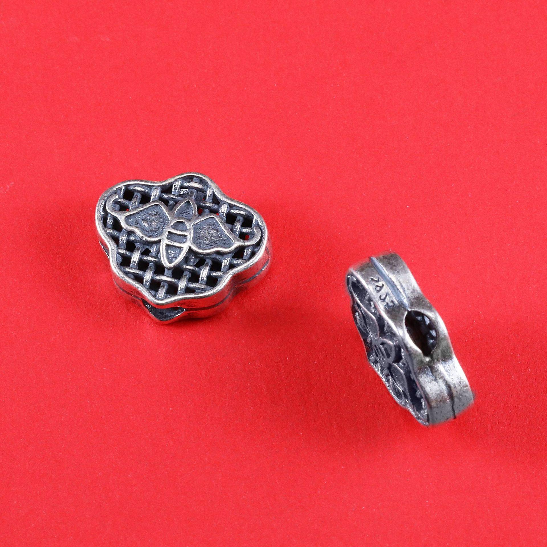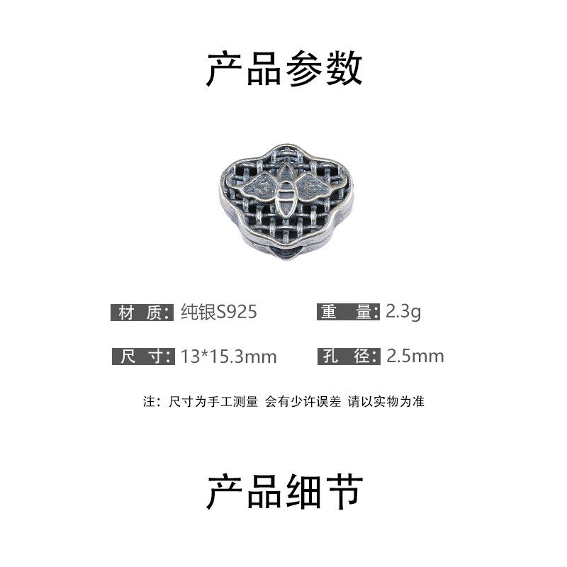 Pulsera de cuerda trenzada Ruyi de plata esterlina S925 con abeja calada, cuentas, accesorios de plata tailandesa, accesorios hechos a mano