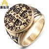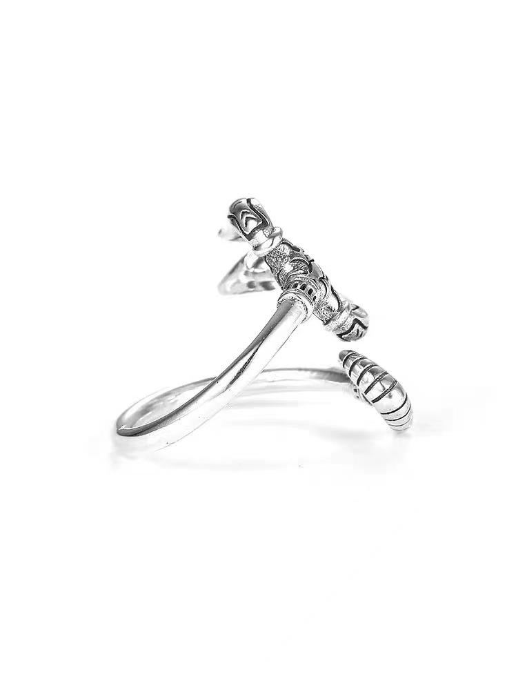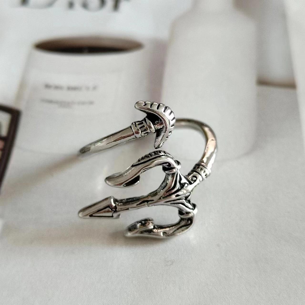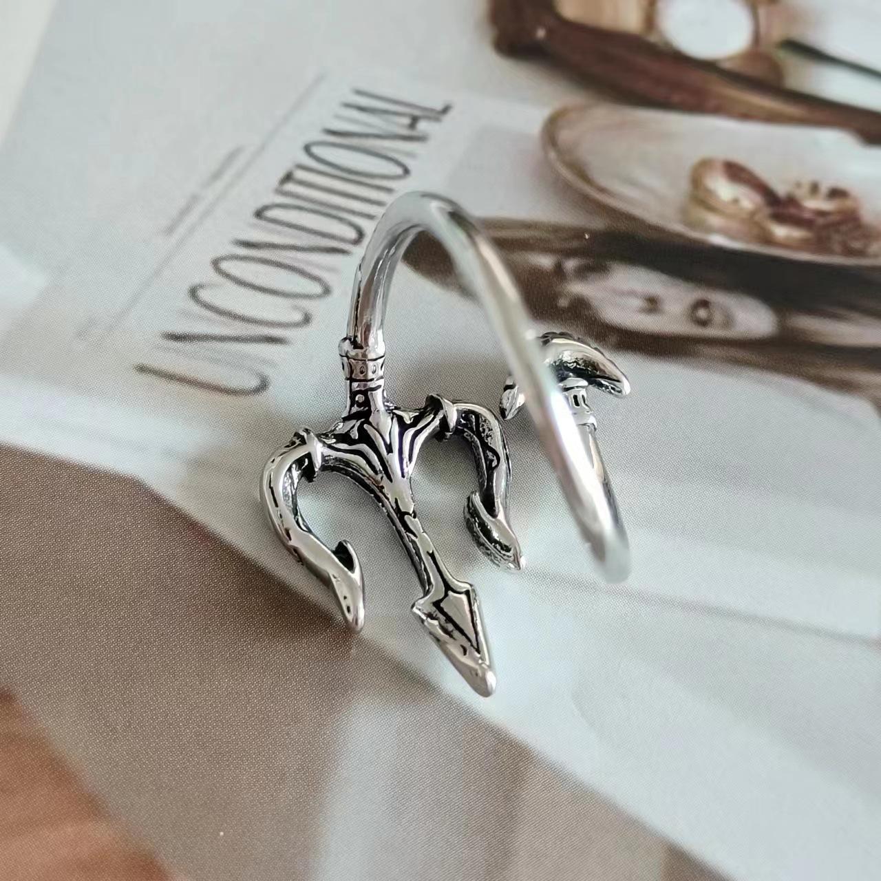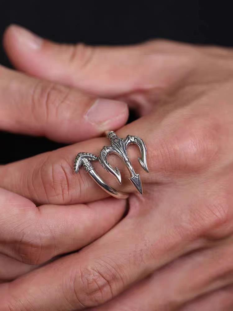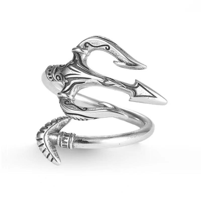 Anillo europeo y americano nuevo plateado Rey del Mar Tridente Pu anillo guapo personalidad versátil retro moderno para hombre anillo abierto ajustable