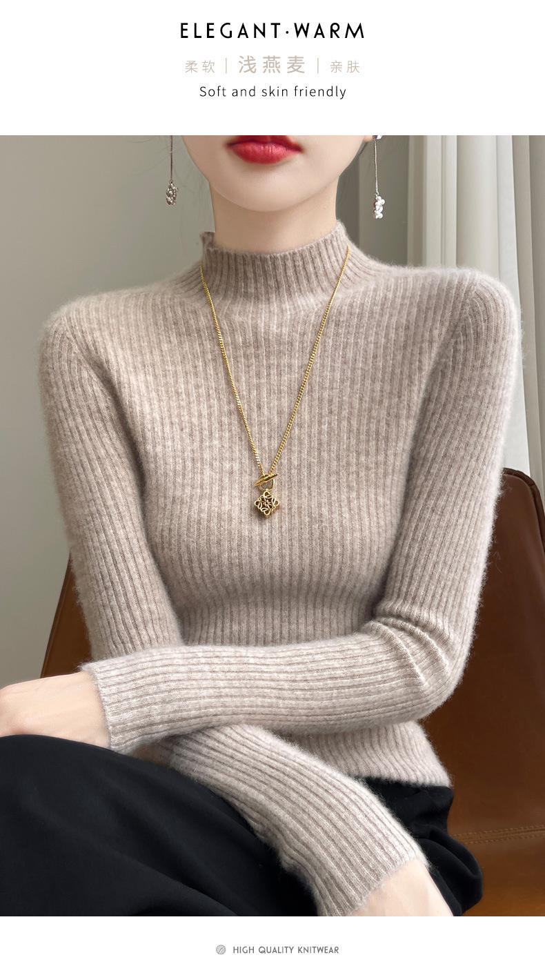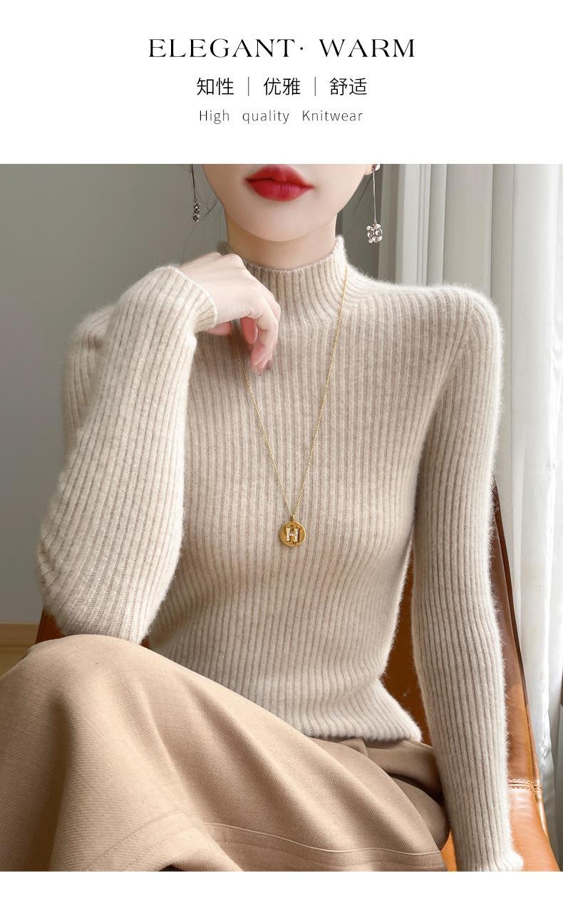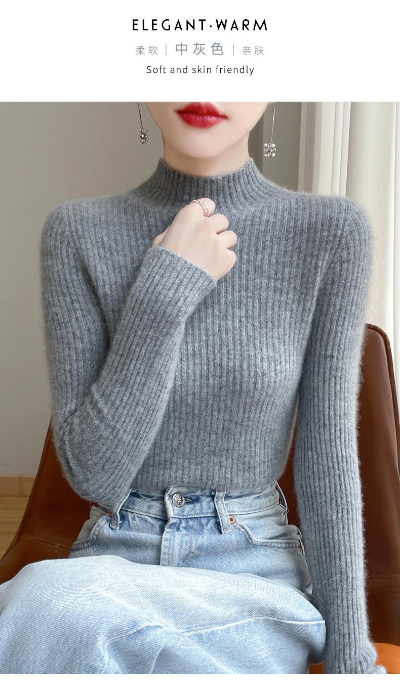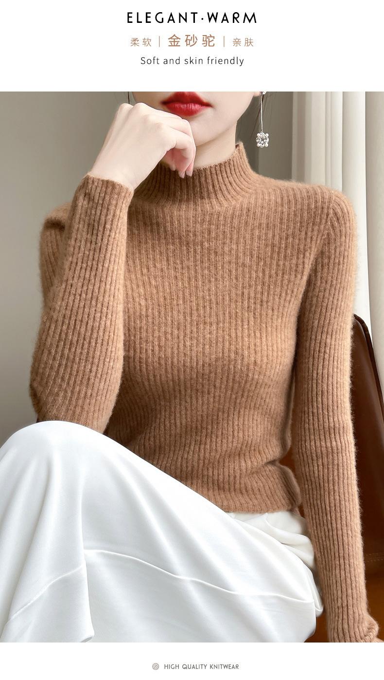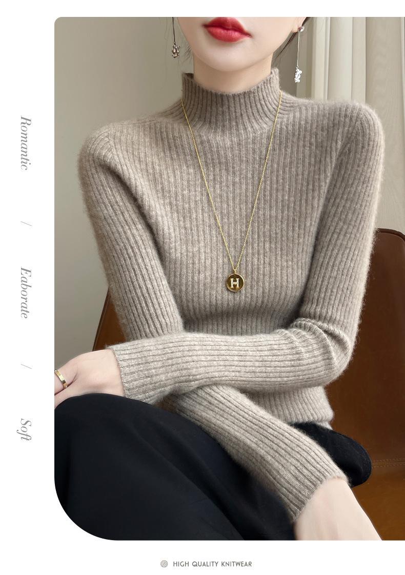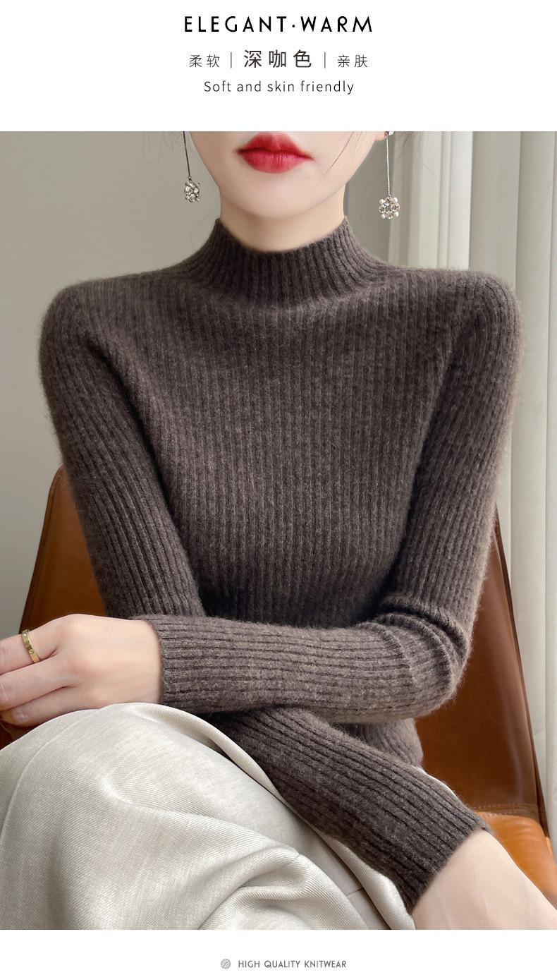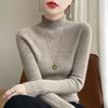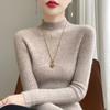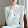 Otoño e Invierno Nueva Llegada Estilista de Ropa de Primera Línea Tejido Cuello Medio Alto Elegante Top Combinable Manga Larga Suéter Holgado Básico para Mujer