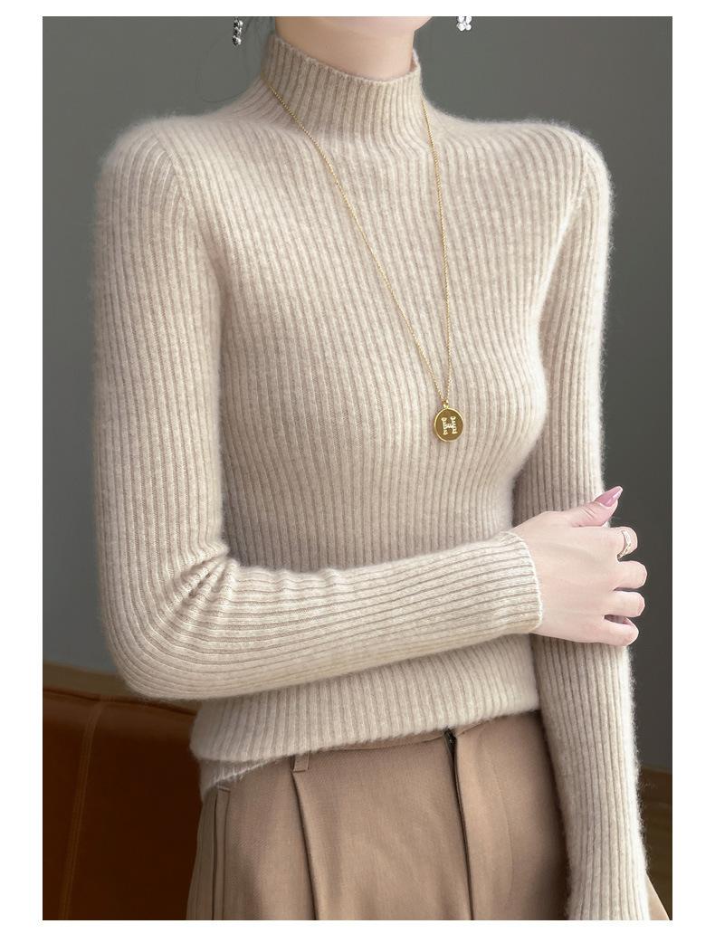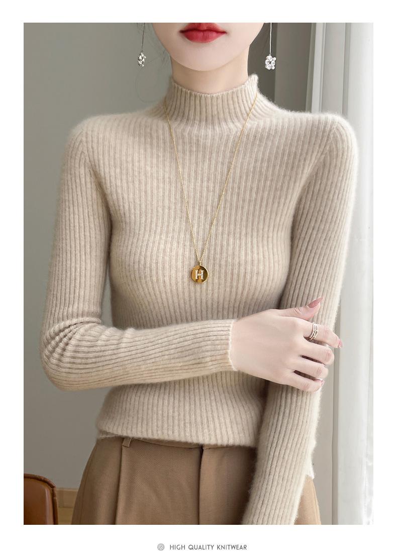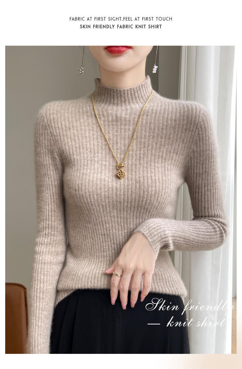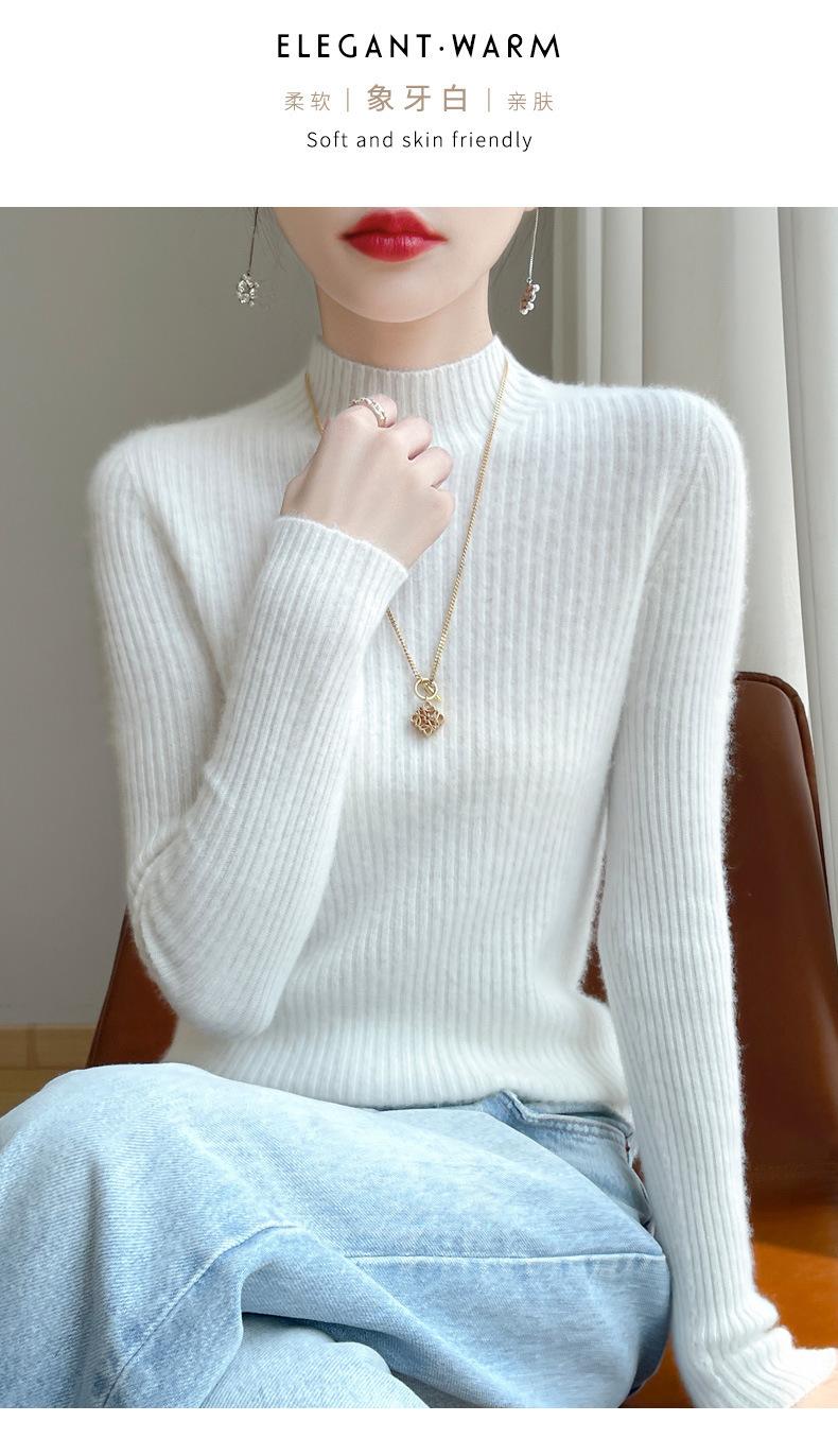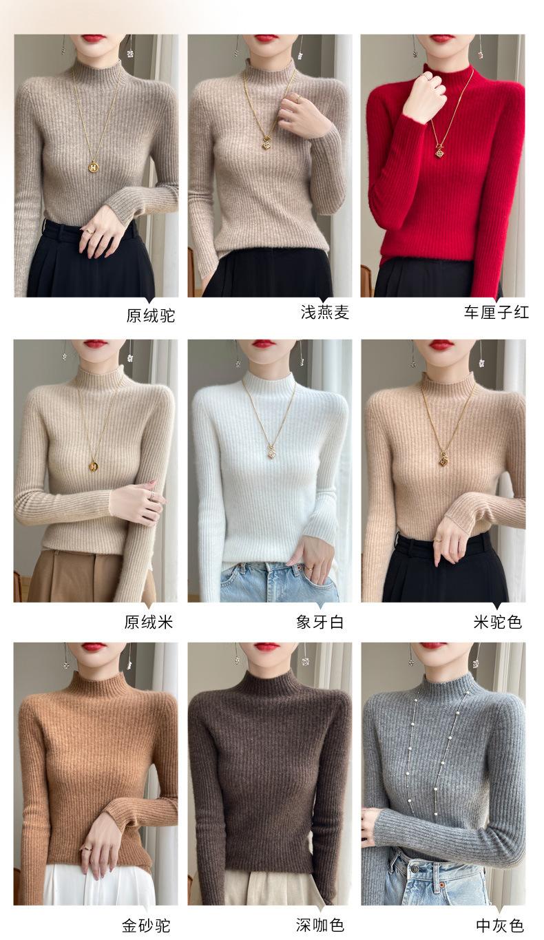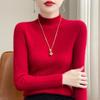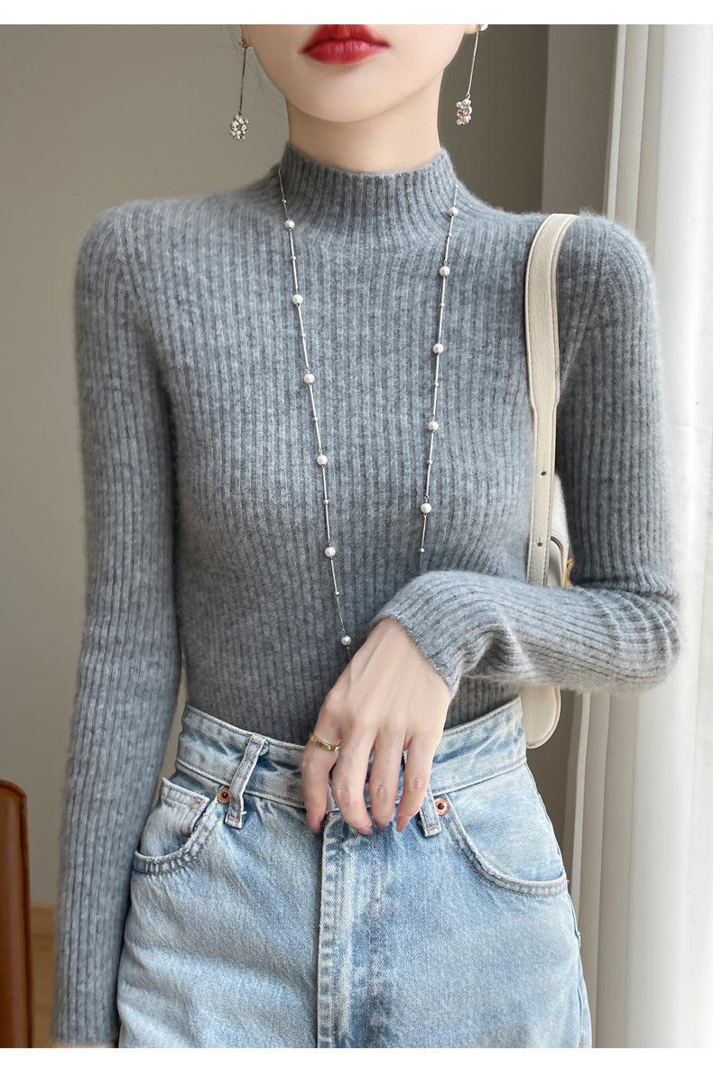 Otoño e Invierno Nueva Llegada Estilista de Ropa de Primera Línea Tejido Cuello Medio Alto Elegante Top Combinable Manga Larga Suéter Holgado Básico para Mujer