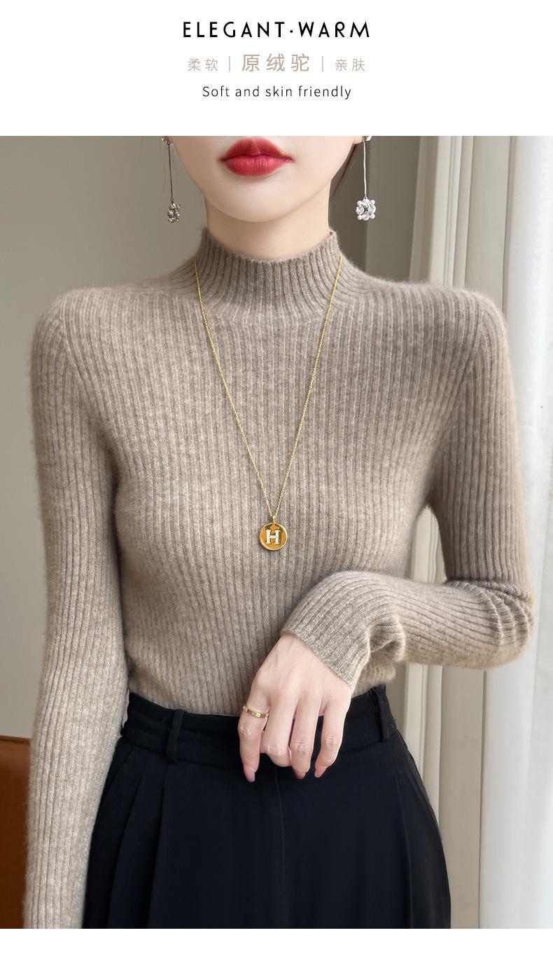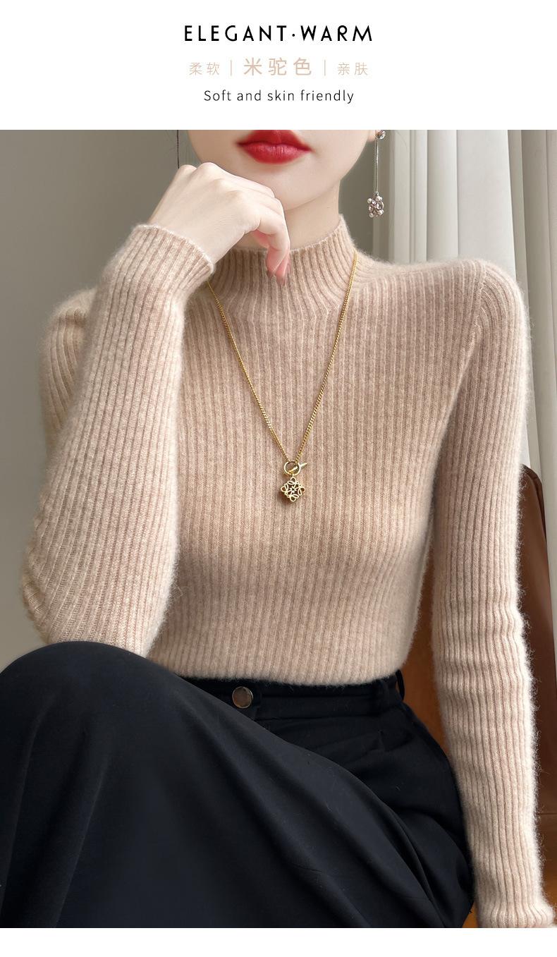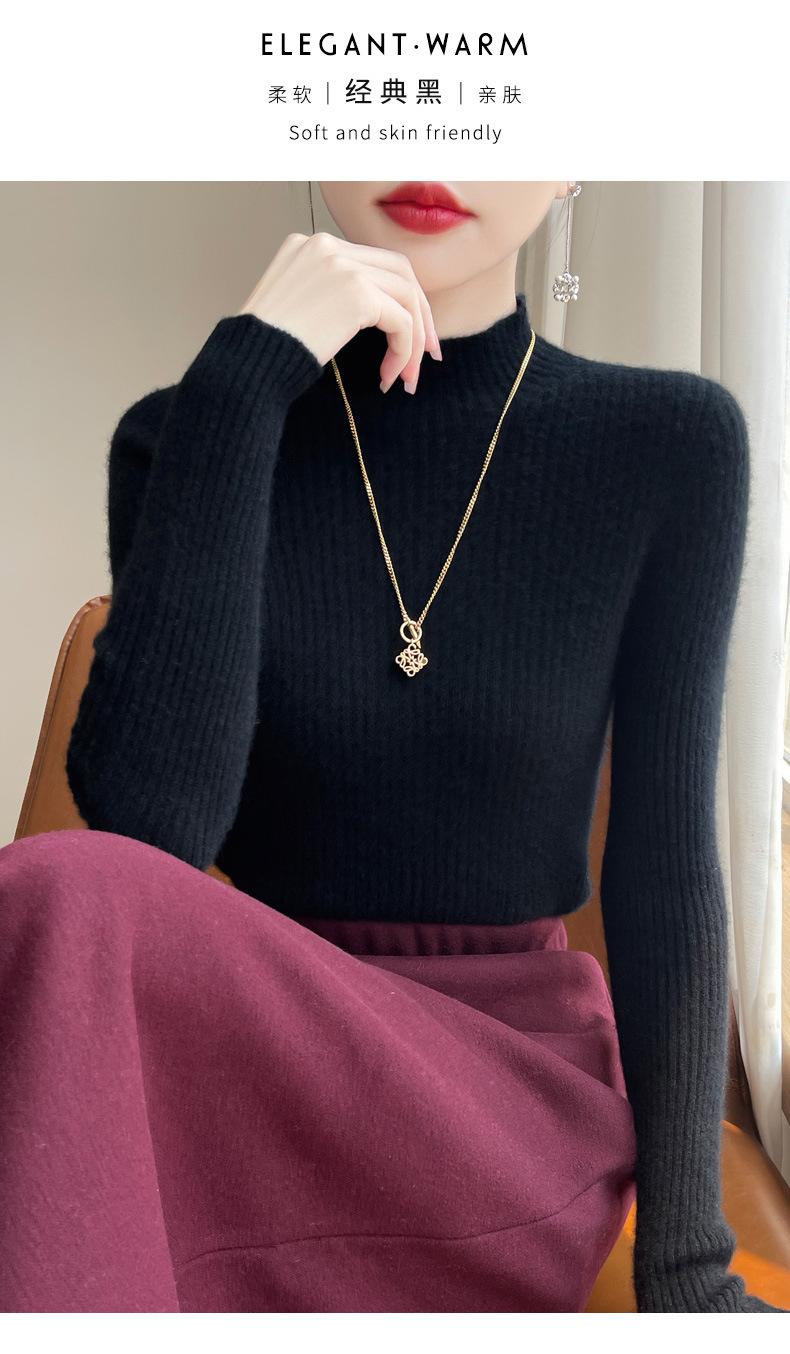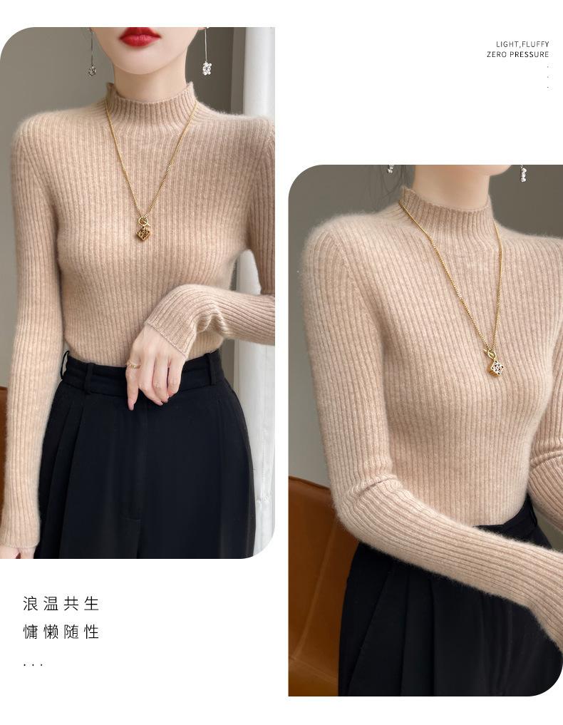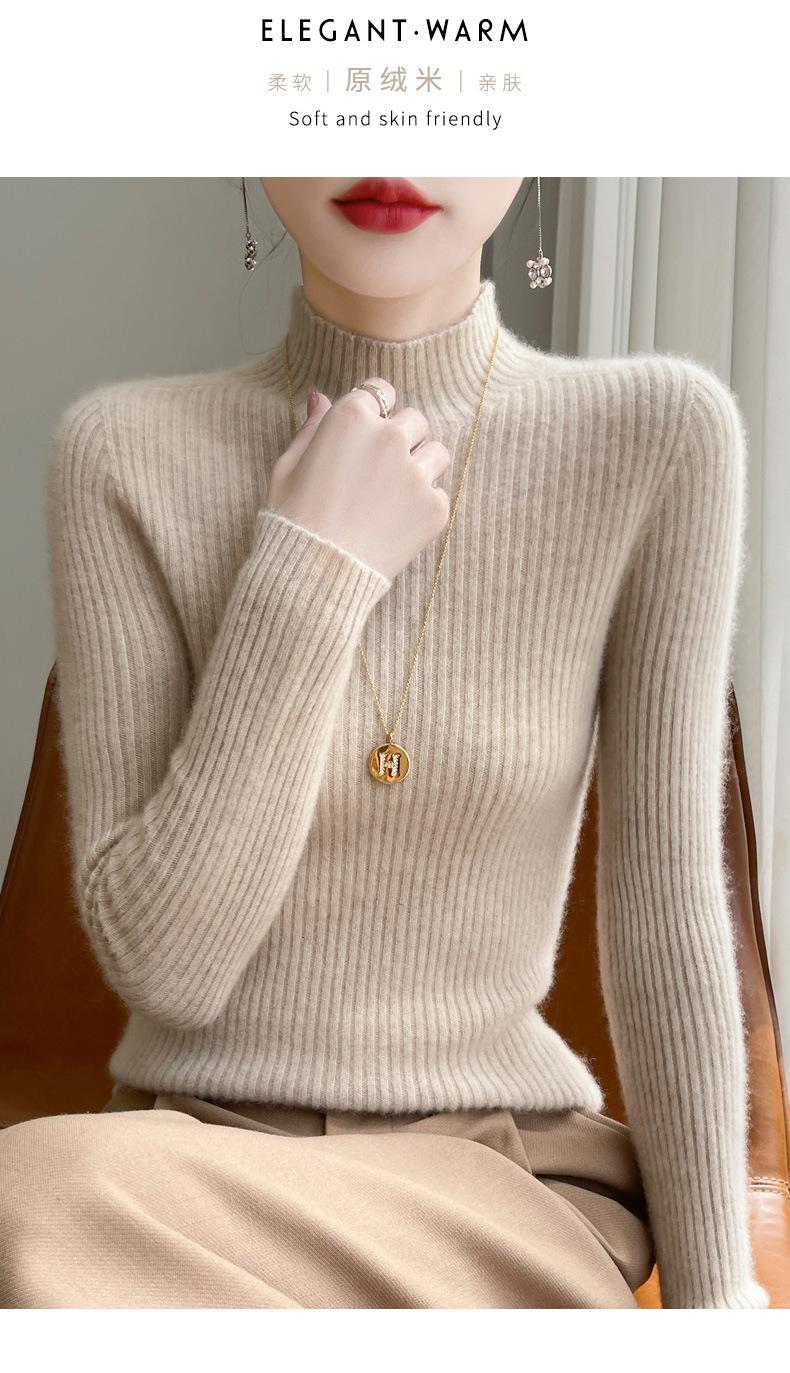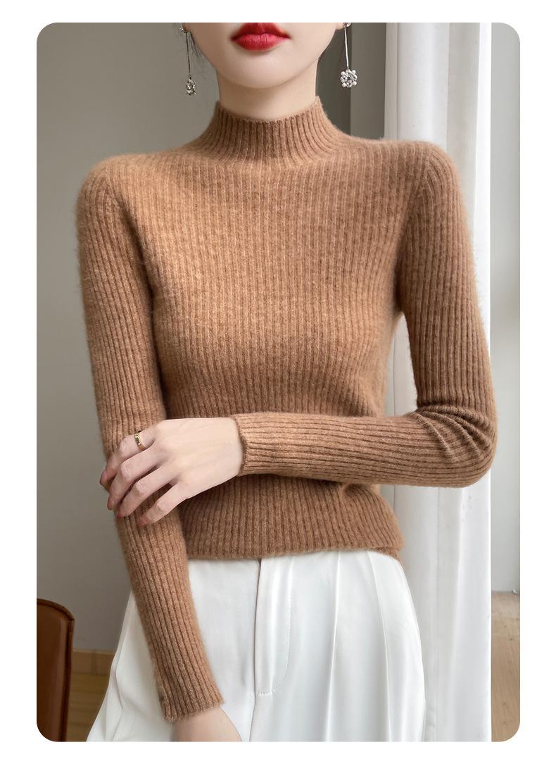 Otoño e Invierno Nueva Llegada Estilista de Ropa de Primera Línea Tejido Cuello Medio Alto Elegante Top Combinable Manga Larga Suéter Holgado Básico para Mujer