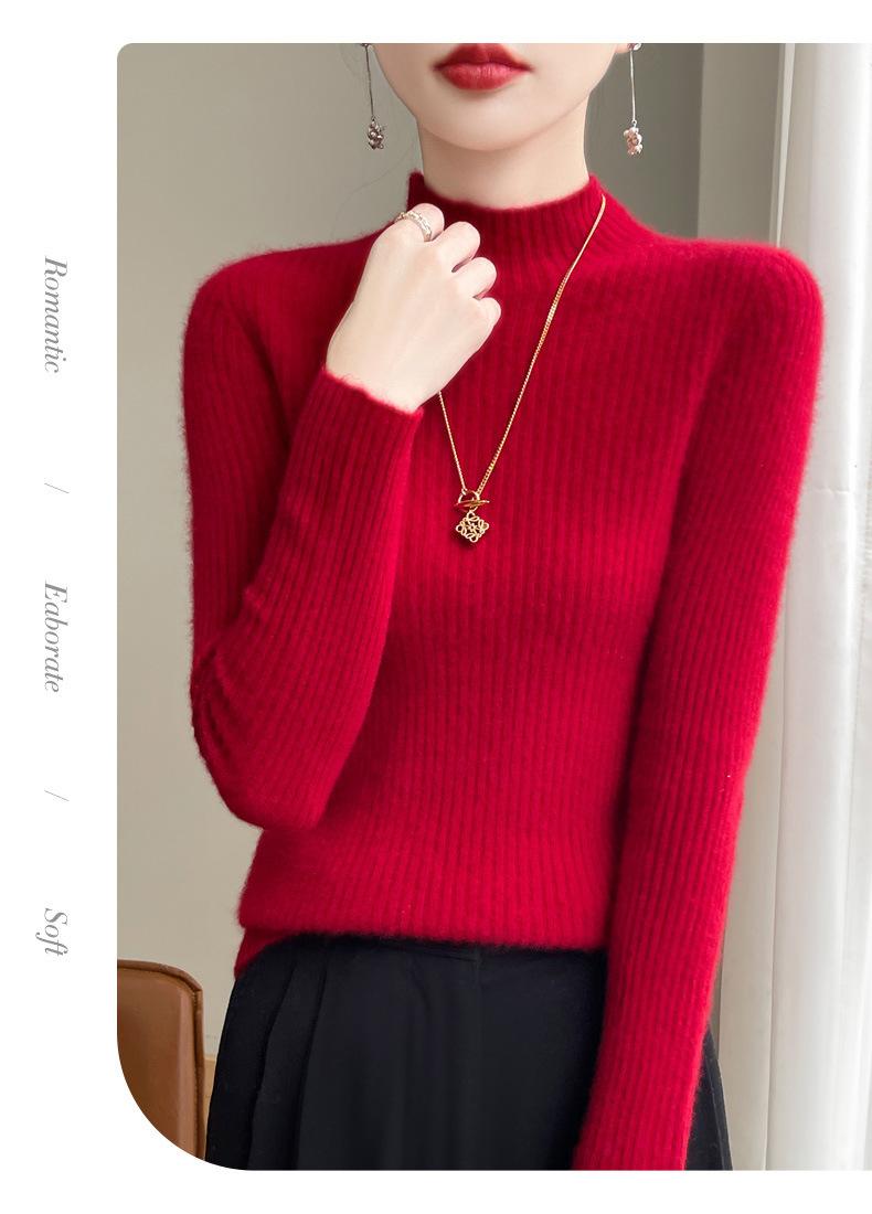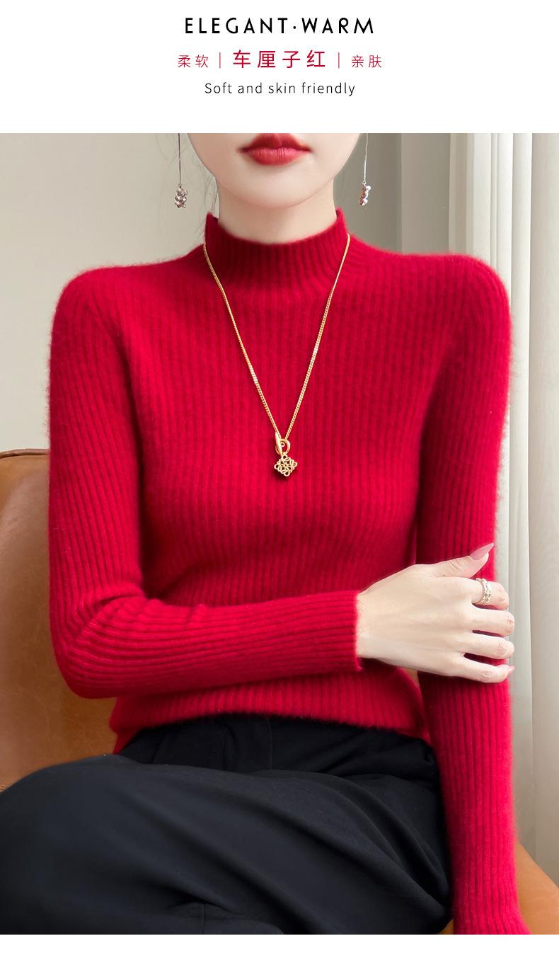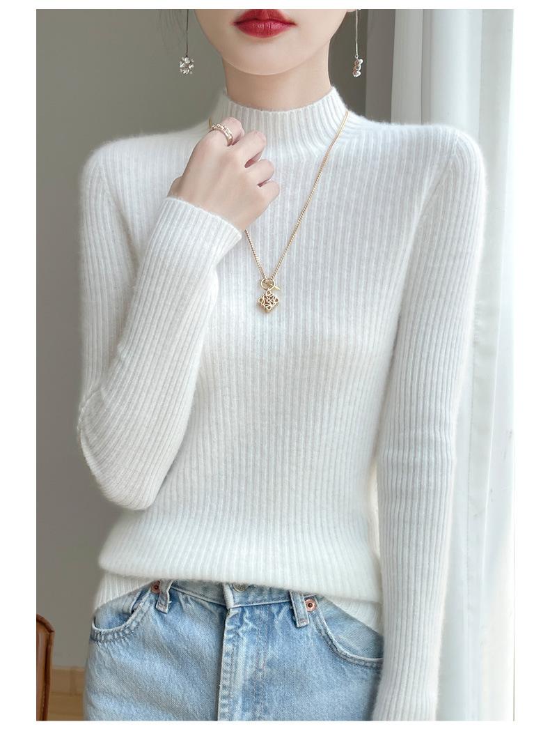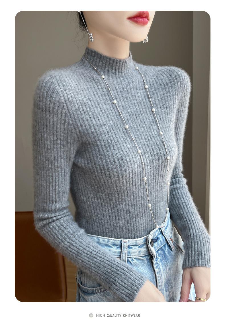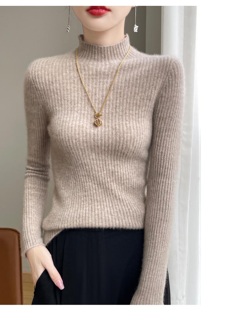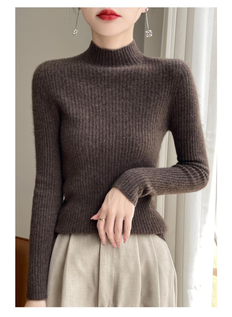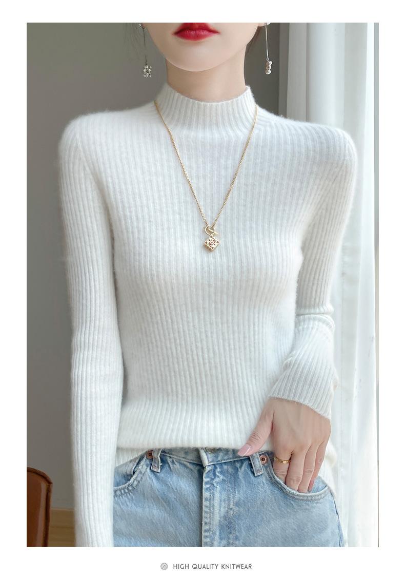 Otoño e Invierno Nueva Llegada Estilista de Ropa de Primera Línea Tejido Cuello Medio Alto Elegante Top Combinable Manga Larga Suéter Holgado Básico para Mujer