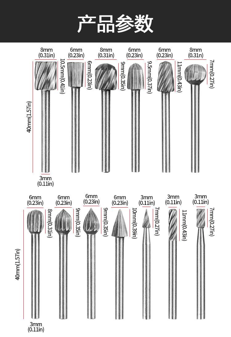 Accesorios de Rectificado Eléctrico Acero de Aleación Acero de Alta Velocidad Cabeza de Rectificado Cabeza de Rectificado Aleación Lima Rotativa Lima para Madera Fresa 20 Piezas