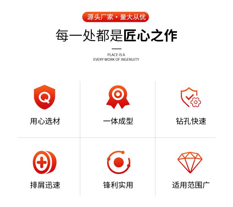 Perfil de la empresa Linyi City Lanshan District Zhengde Drilling Equipment Store Xinshangke Tools Co., Ltd. se estableció en 2014 y tiene su sede en la ciudad de Linyi, provincia de Shandong, la capital nacional de la logística. La empresa es una nueva empresa moderna que integra la investigación y el desarrollo, la producción y las ventas de brocas helicoidales, brocas para martillo eléctrico, puntas para destornillador, abridores de agujeros y otras herramientas y herramientas de corte. La empresa cuenta actualmente con un equipo profesional de I+D, producción, almacenamiento y ventas. Tenemos ventajas competitivas únicas en herramientas de ferretería y consumibles, y podemos proporcionar a los clientes mejores soluciones y capacidades de servicio.