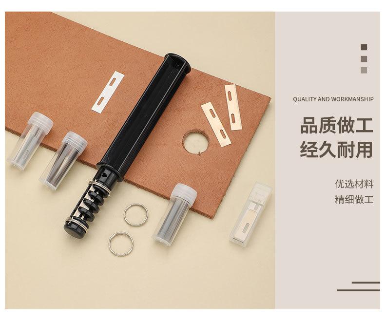 El primer paso es usar un punzón redondo con un diámetro de más de 20 mm para hacer un agujero redondo en el centro del cuero preparado.