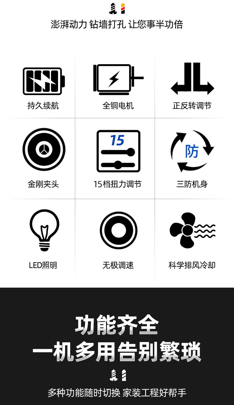 Taladro de Mano Inalámbrico Taladro de Pistola Recargable Litio Herramienta Eléctrica Taladro Eléctrico de Impacto Multifunción Destornillador Eléctrico Doméstico