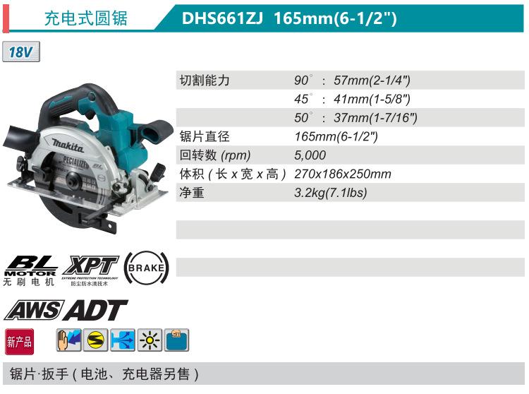Sierra circular eléctrica recargable Makita DHS661ZJ motor sin escobillas 165mm batería de litio 18V