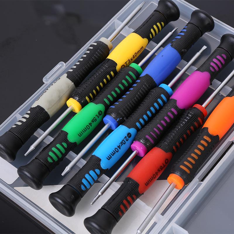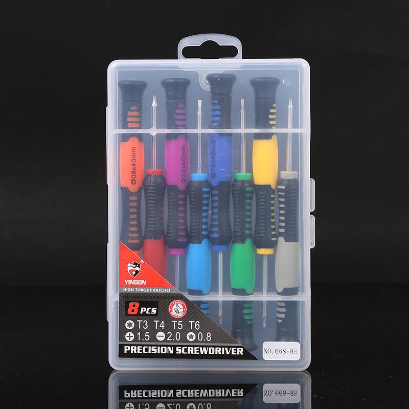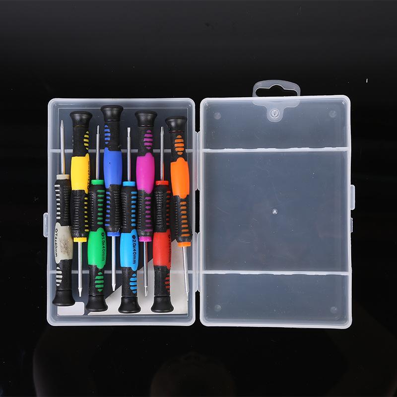 Destornillador pequeño de varios tamaños, 8 en 1, caja de plástico, herramienta de desmontaje para mantenimiento de relojes y teléfonos móviles.