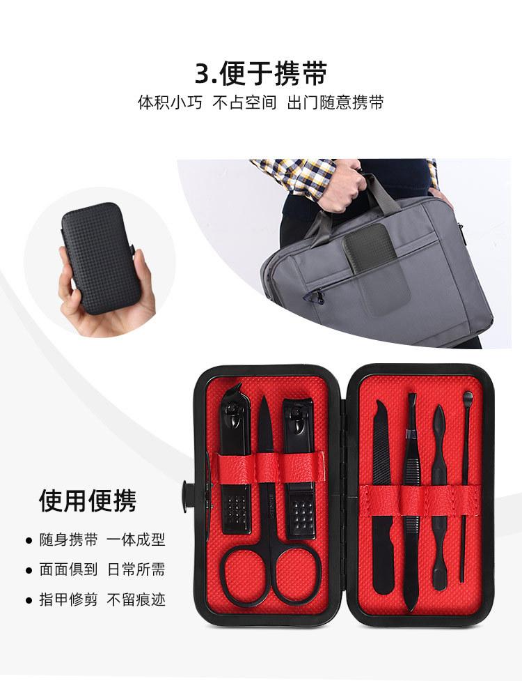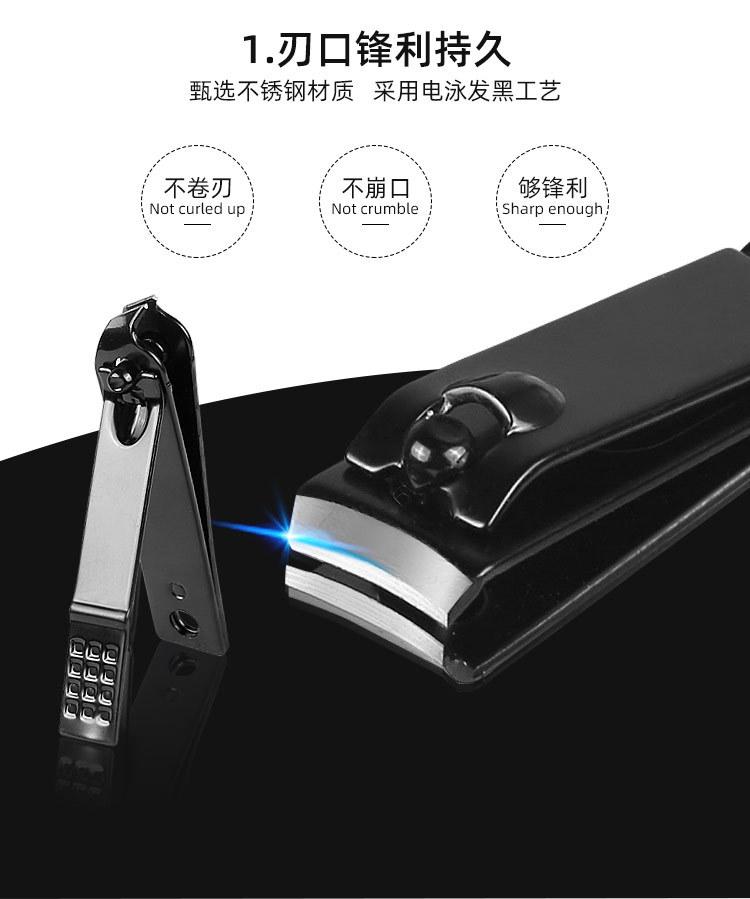 Juego de manicura de acero inoxidable negro, cortaúñas de 7 piezas, kit de cuidado para pedicura con piel muerta