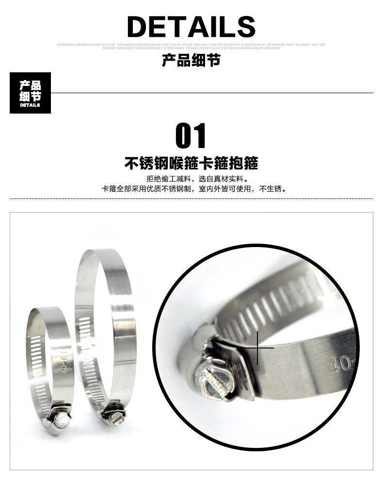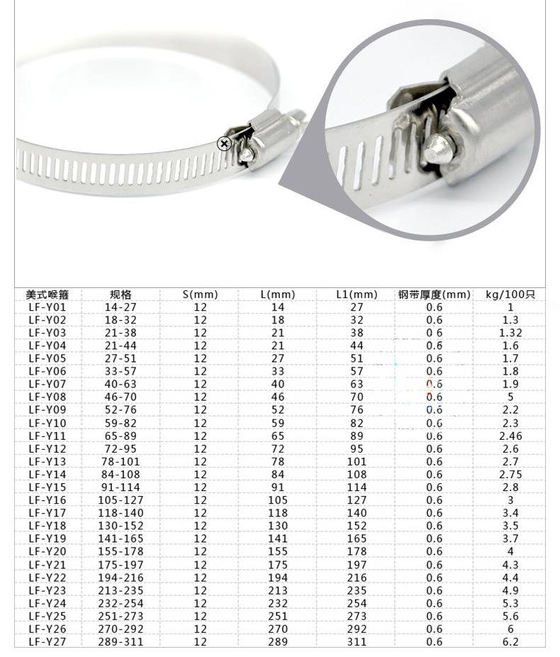 Abrazadera de tubo de acero inoxidable 201, abrazadera de tubo, abrazadera de tubo, abrazadera de tubo de ajuste rápido totalmente de acero, abrazadera americana
