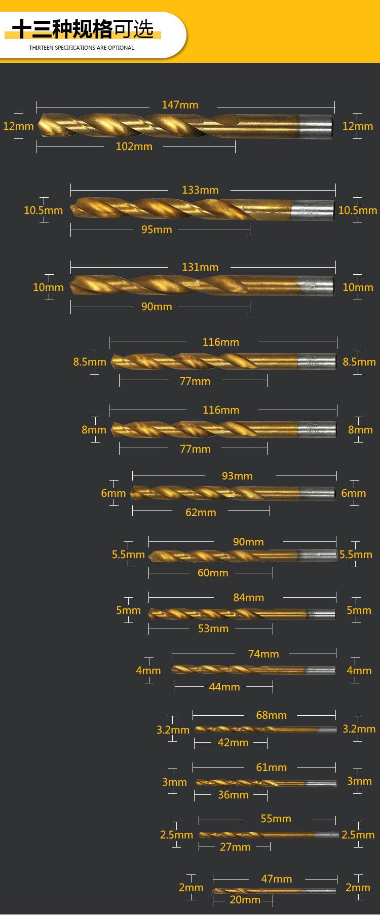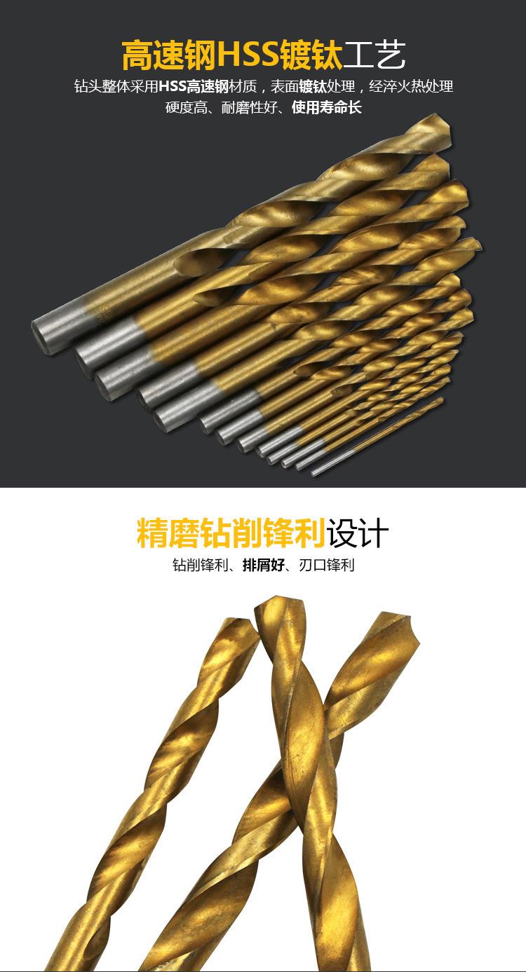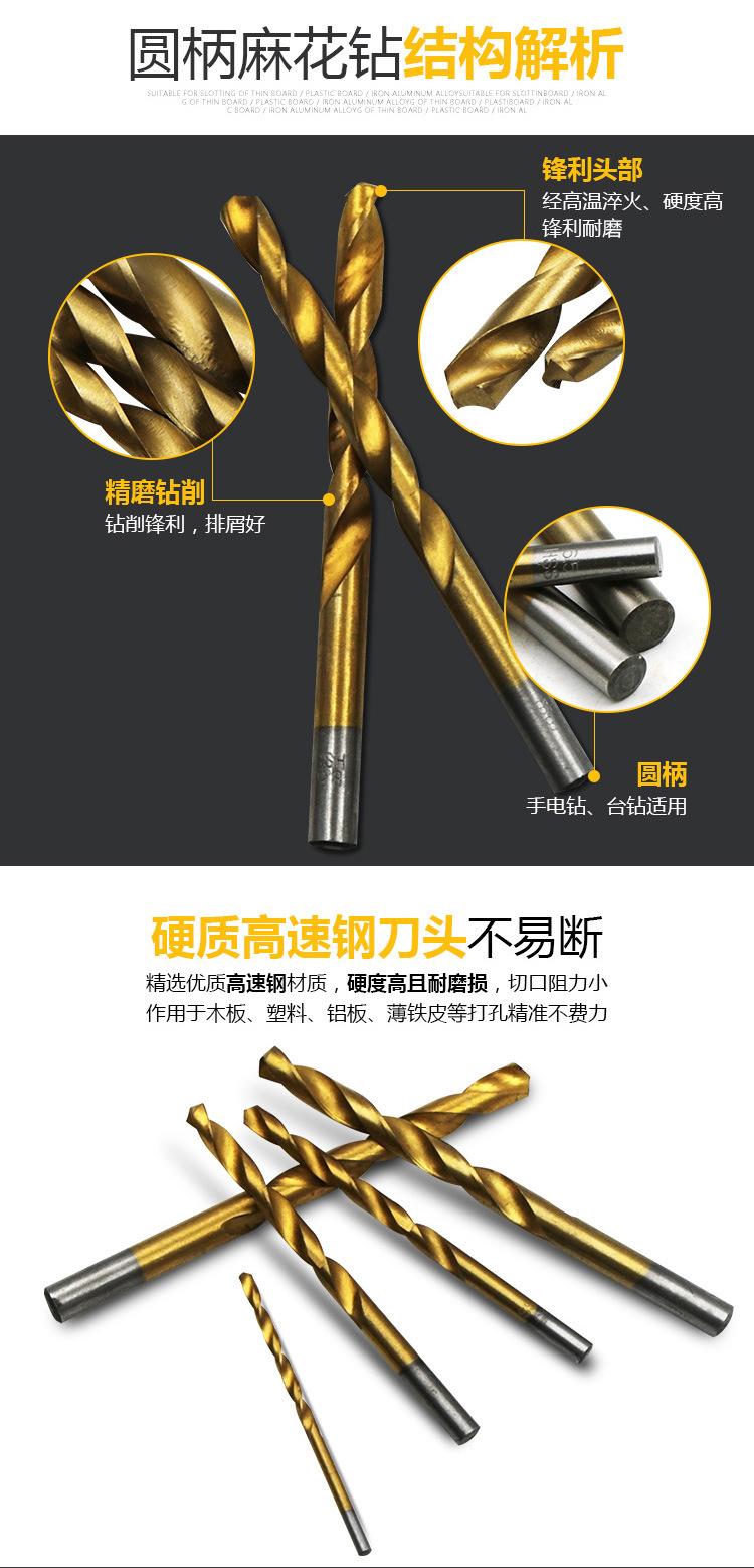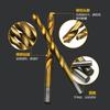 Acero rápido HSS, hecho con tecnología de titanio, puede perforar madera, pegamento, aluminio y hierro delgado. ¡No perfore la pared!