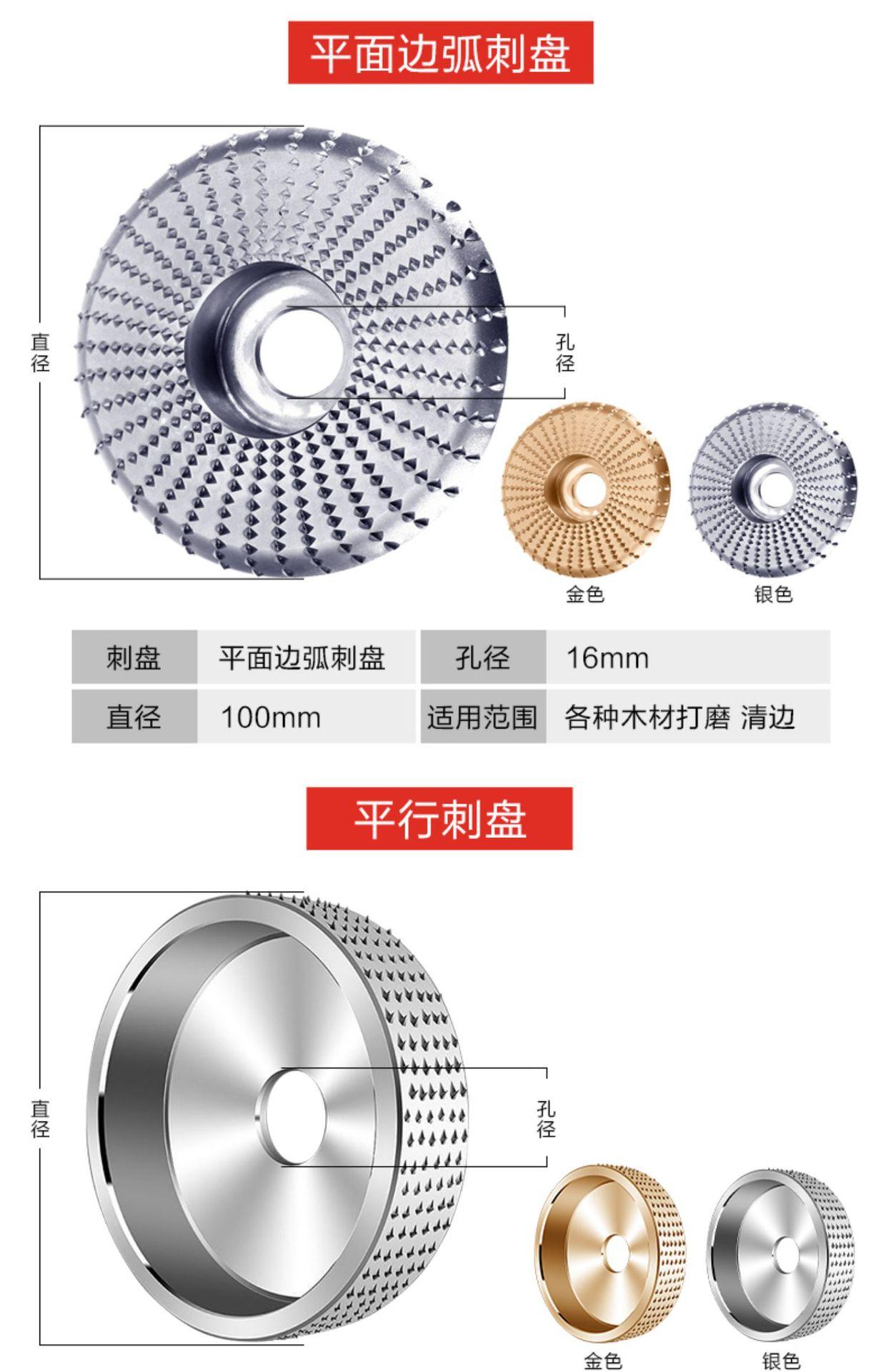 Amoladora angular, placa de pulido, disco de espinas para carpintería, rueda, hoja de sierra de cadena, papel de lija flocado, cien impulsores, herramienta de pulido y rectificado