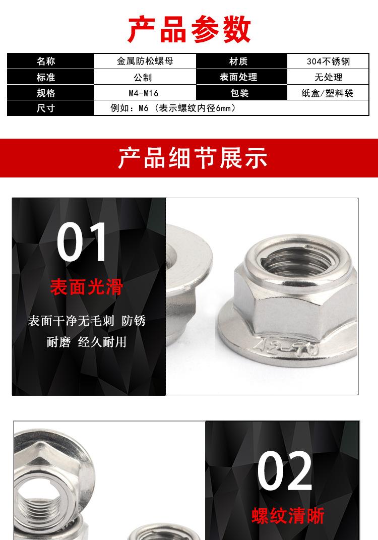 Tuerca de seguridad de metal con brida de acero inoxidable 304, tapa de tornillo de bloqueo, tuerca autoblocante M4M5M6M8M10M12M16