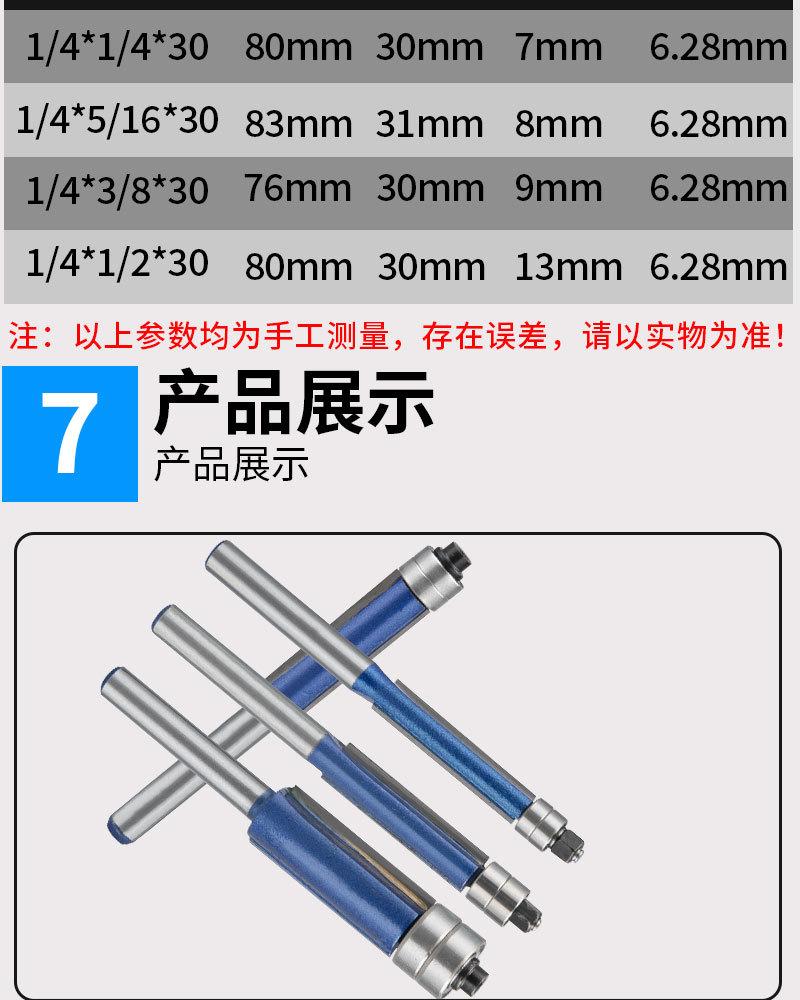 1/4X1/4X30, 1/4X5/16X30, 1/4X3/8X30, 1/4X1/2X30, Trimmer upper double bearing 1/4 four-piece set