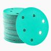 Fabricante Venta al por Mayor Papel de Lija de Película de Poliéster 5 Pulgadas 6 Agujeros Verde Arena Rueda de Aleación de Aluminio Pulido Hoja Cepillada Hoja de Papel de Lija Flocada