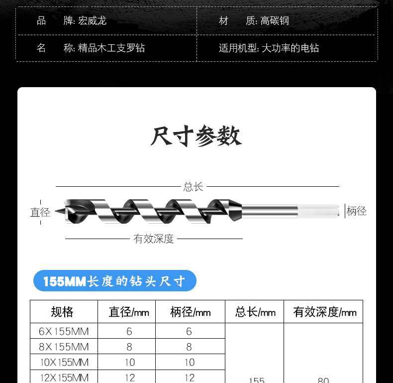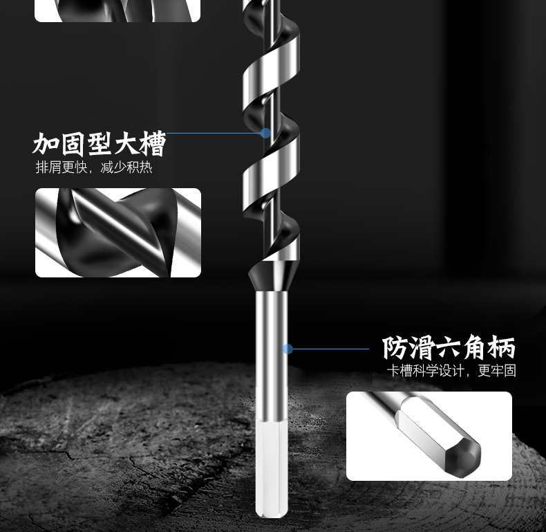 Broca de vástago hexagonal para carpintería, broca helicoidal alargada, herramienta para abrir cerraduras de madera, 18 agujeros para taladrar árboles