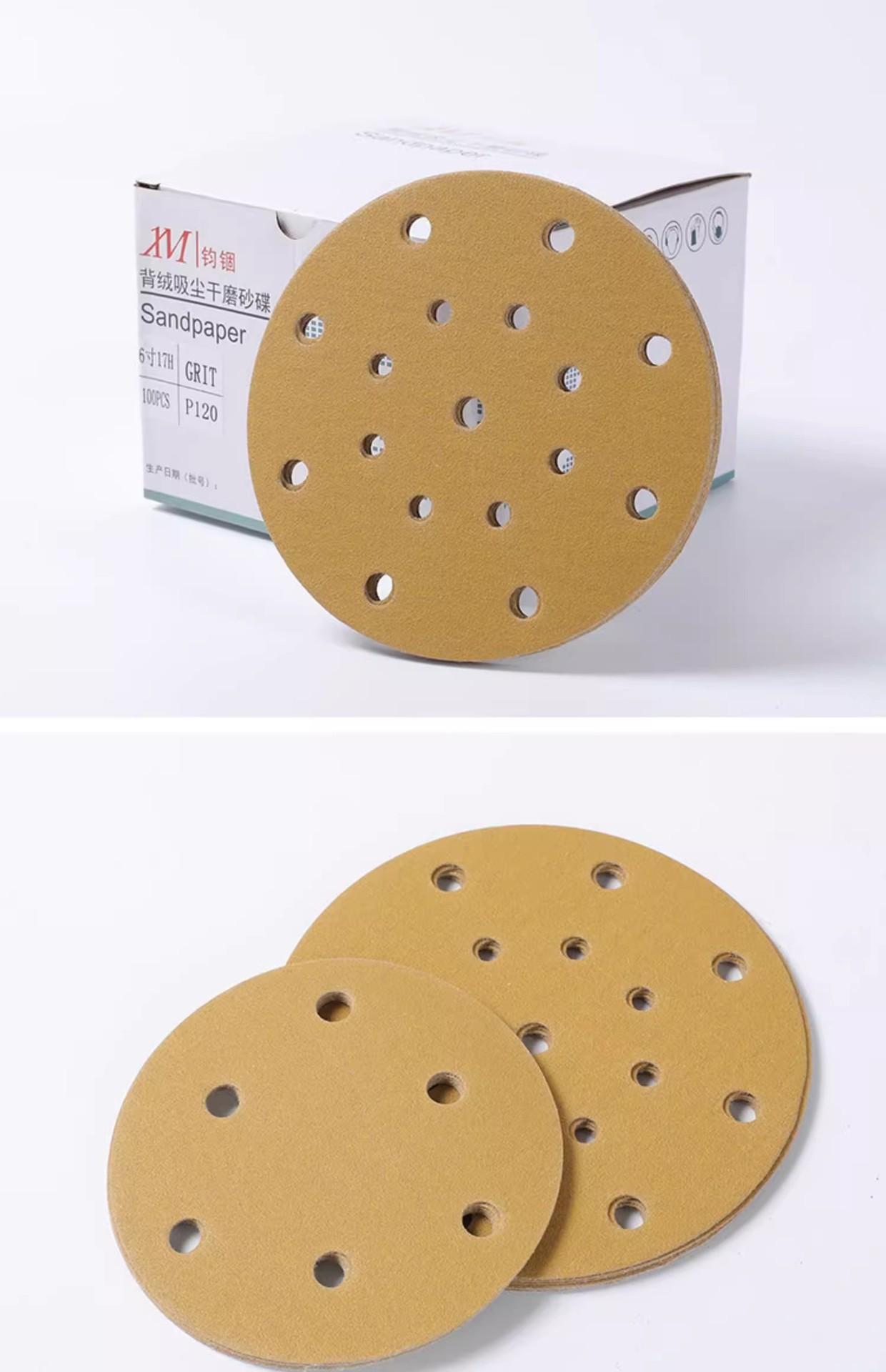Papel de lija seco de 6 pulgadas, disco de 17 agujeros, papel de lija flocado, masilla industrial, papel de lija para lijado de automóviles, lijado de cuero