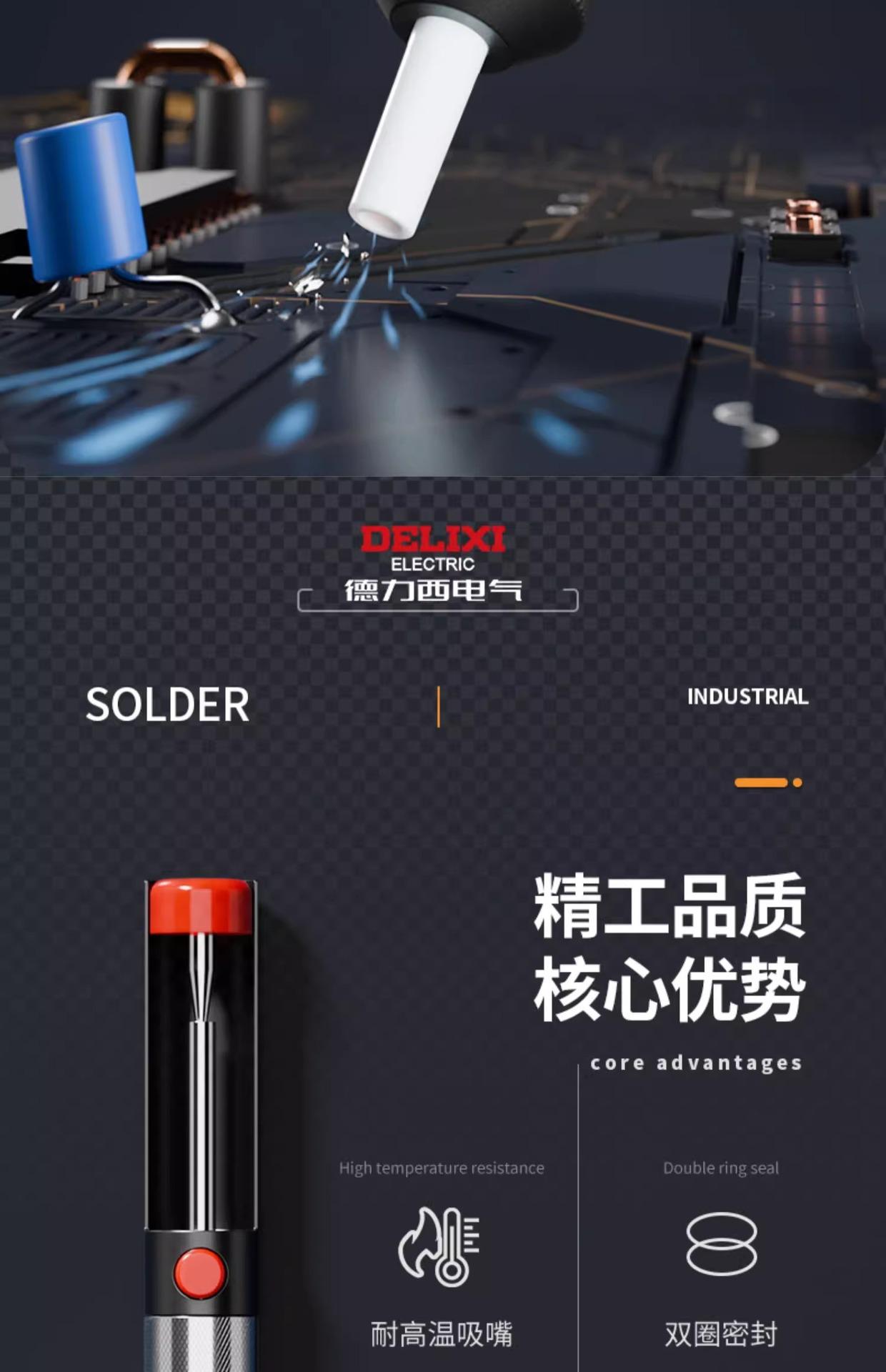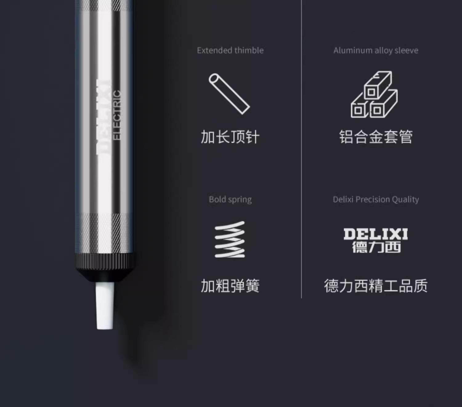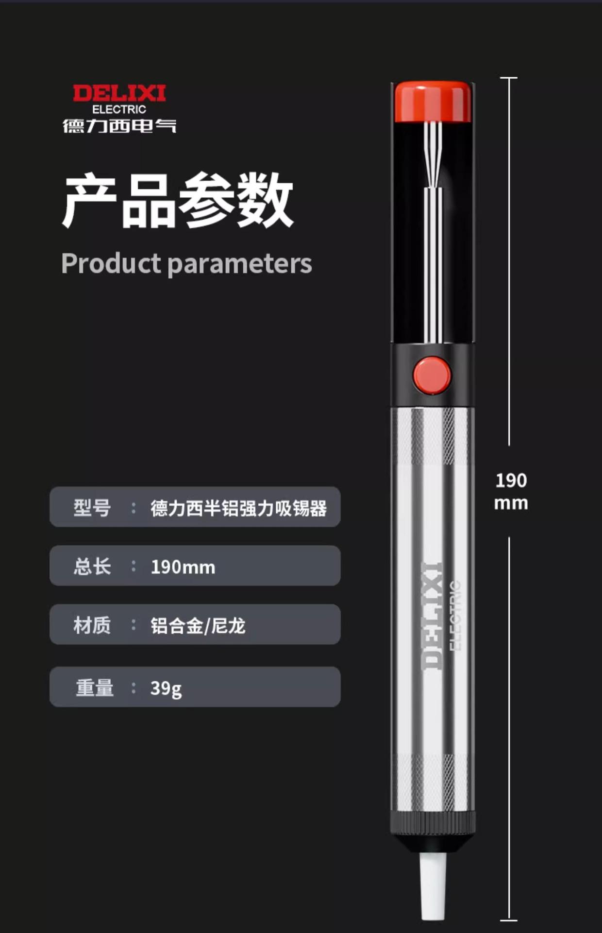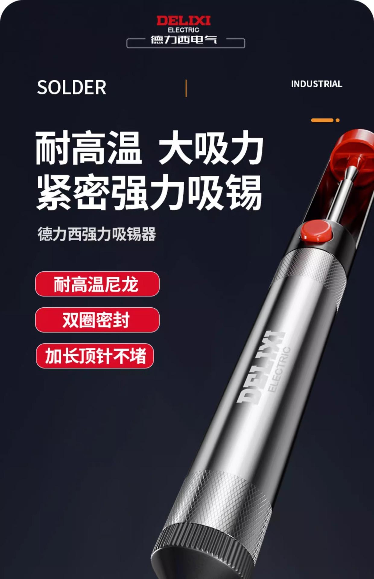 Absorbedor de estaño Delixi, potente bomba de estaño, desoldador electrónico para eliminar escoria de estaño, herramienta de soldadura, pistola de vacío de estaño manual