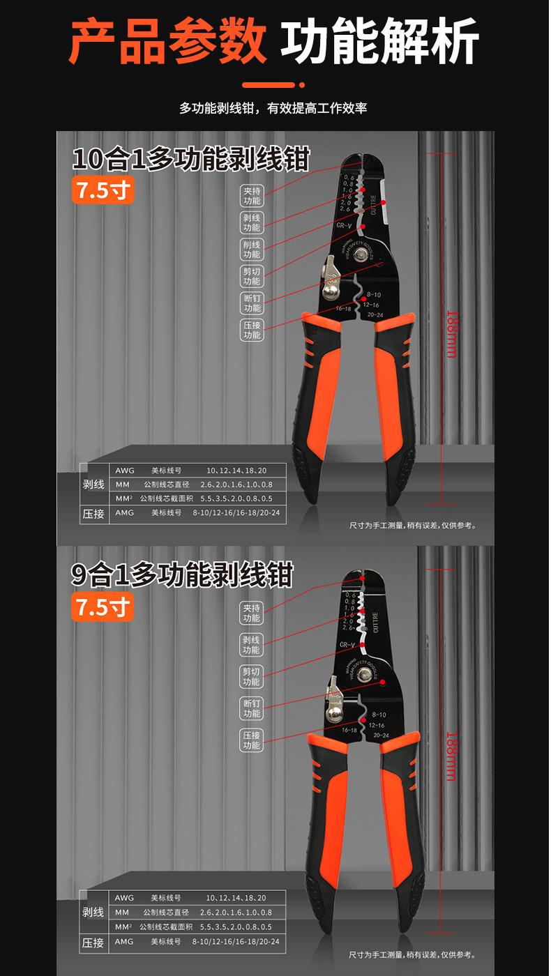 Alicates Pelacables Multifuncionales para Electricistas, Alicates para Crimpar y Pelar, Alicates para Cortar Cables, Alicates para Pelar y Tirar Cables, Herramientas para Electricistas