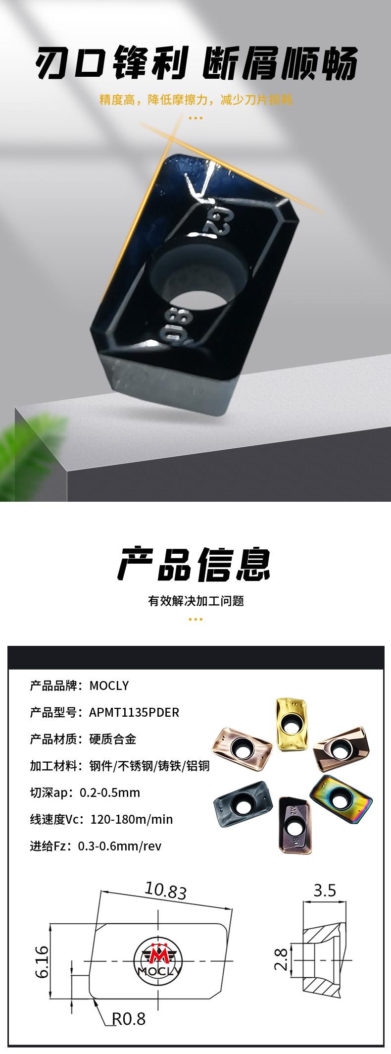 Inserto de fresado CNC APMT1135PDER0.8, venta al por mayor, grano de corte, fresado CNC, acero al carbono, acero inoxidable, aleación de hierro fundido