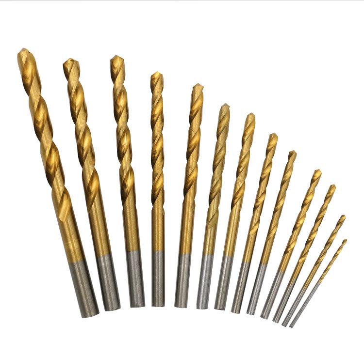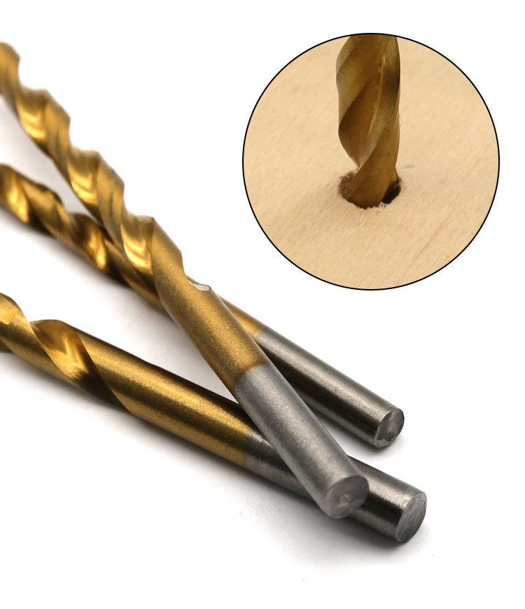 Broca helicoidal de vástago recto de acero de alta velocidad de 1,5 a 6,5 mm con revestimiento de titanio, 13 juegos de orificios para perforar madera y plástico