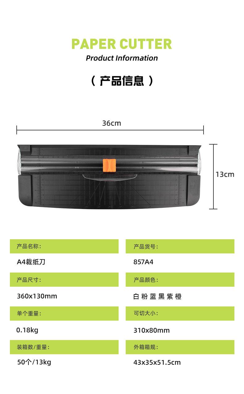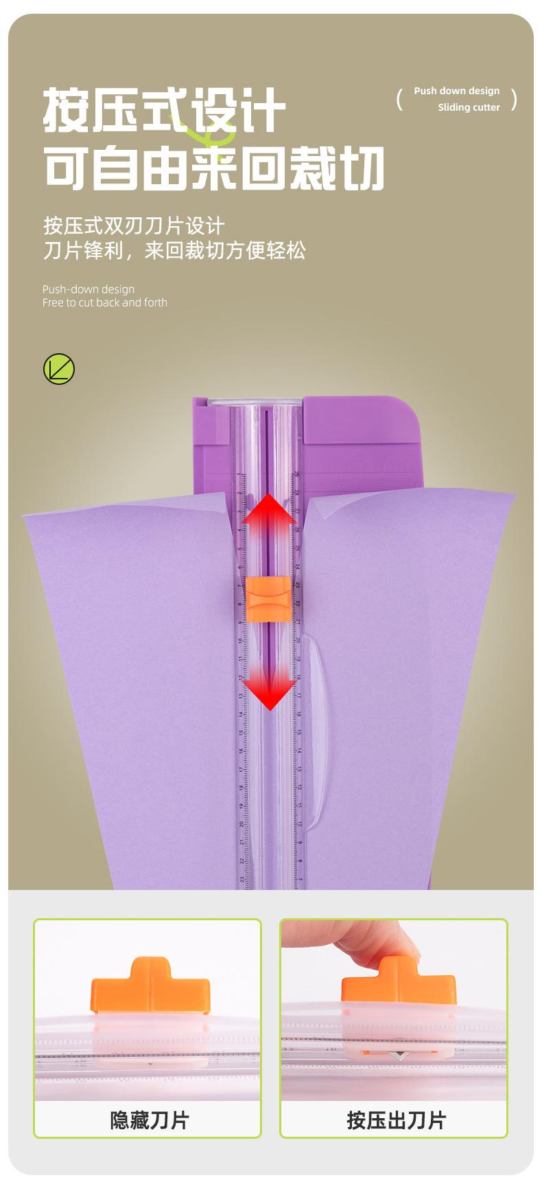 Cortador de papel deslizante A4 con cabezal de corte de seguridad de hoja oculta, cortador de papel manual, cortador de papel manual, cortador de papel