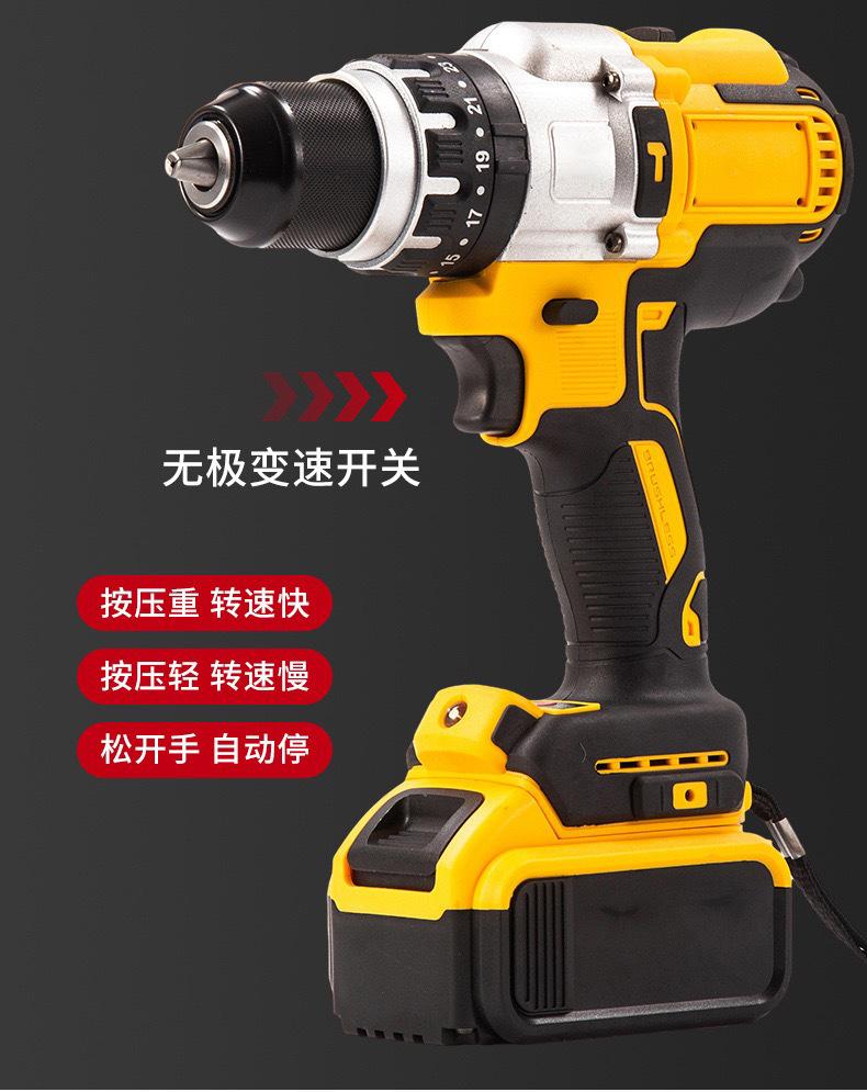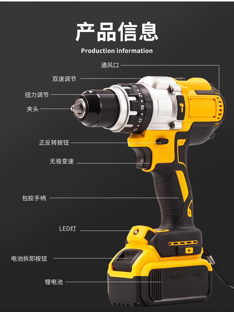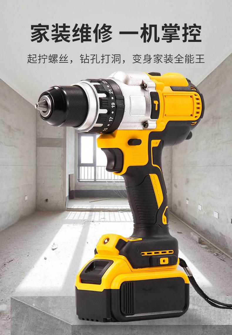 Taladro eléctrico de litio multifunción para perforación, uso doméstico, control de velocidad electrodeless, taladro de mano, alta potencia, batería de litio, taladro de pistola, venta al por mayor