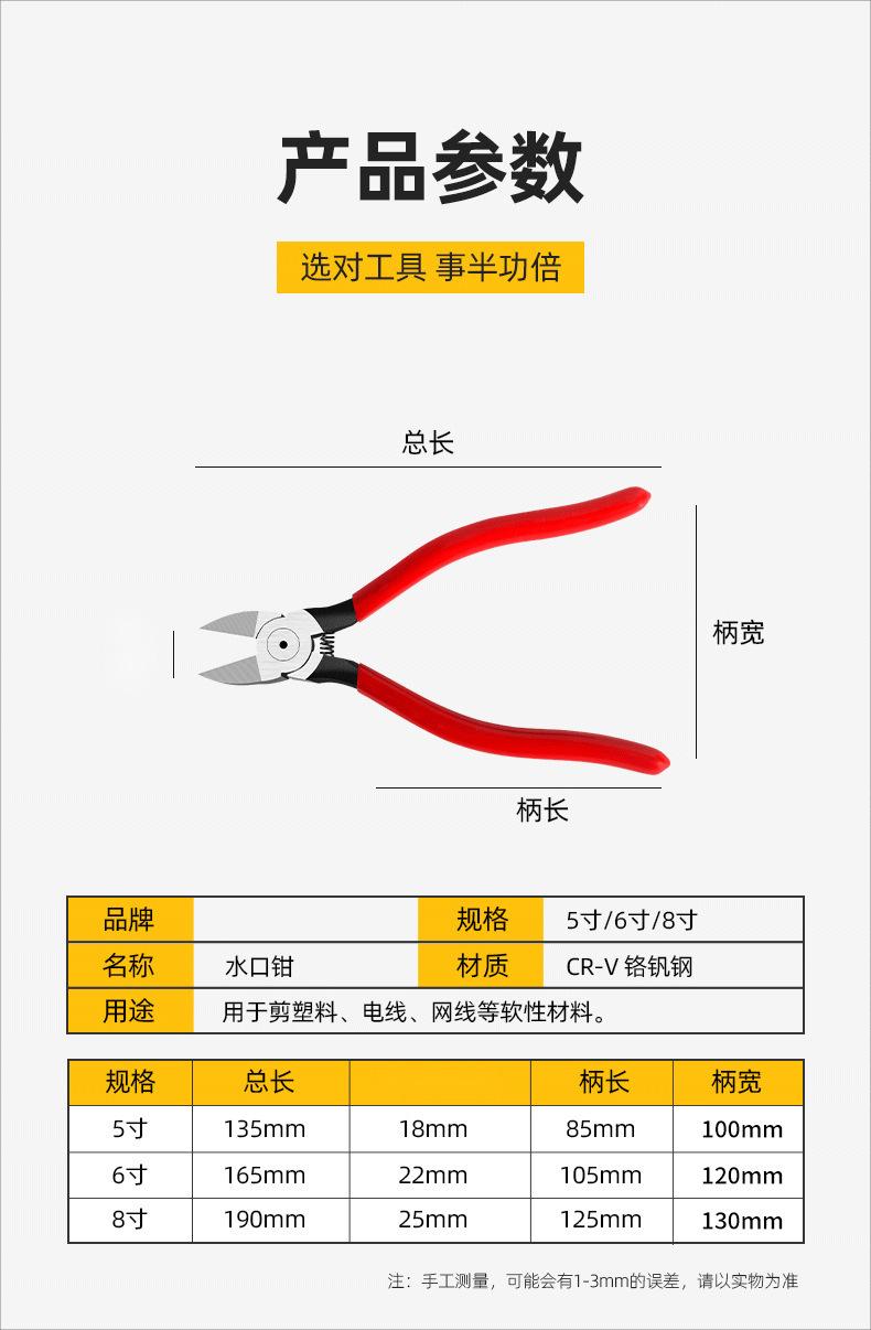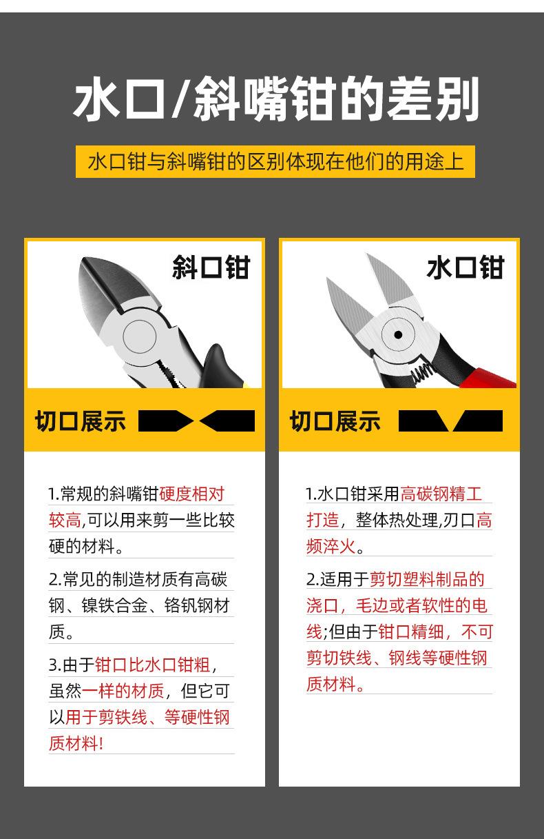 Alicates de boquilla industriales, alicates de corte diagonal para electricistas con boca parcial, apertura de boca diagonal, corte manual, alicates para alambre de alta dureza