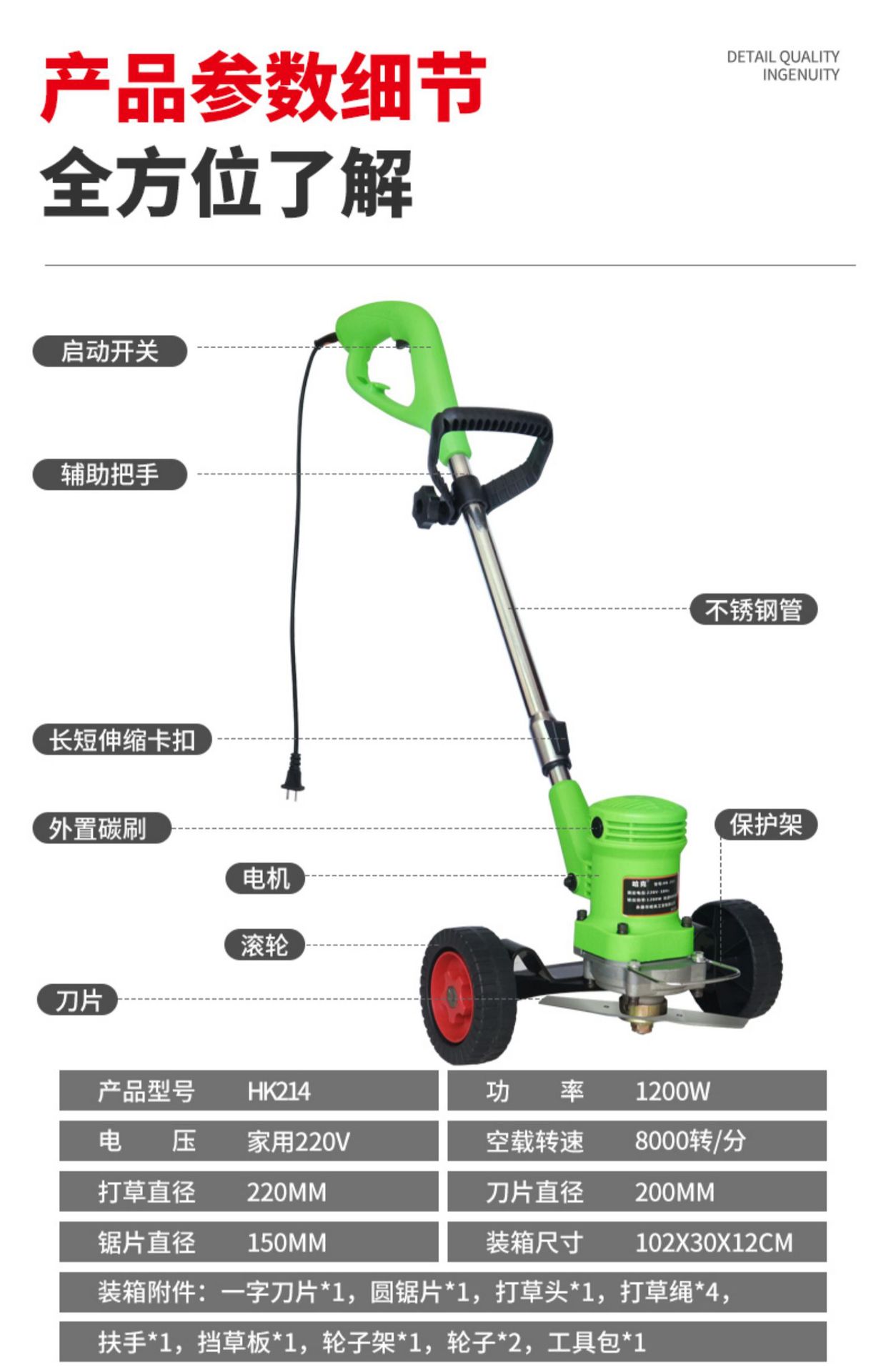 High-power 1200W lawn mower can be loaded with blade and grass rope, High power 1200W+ 10m wires, High power 1...