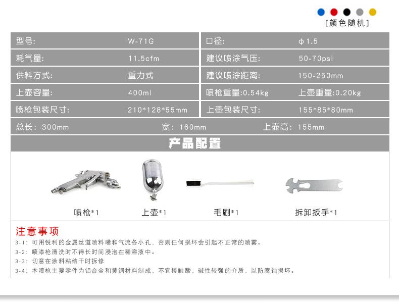 Pistola de pulverización neumática modelo W-71G para pintura de pared, alta atomización, reparación de muebles, cuero, ropa, pintura para madera y automóviles