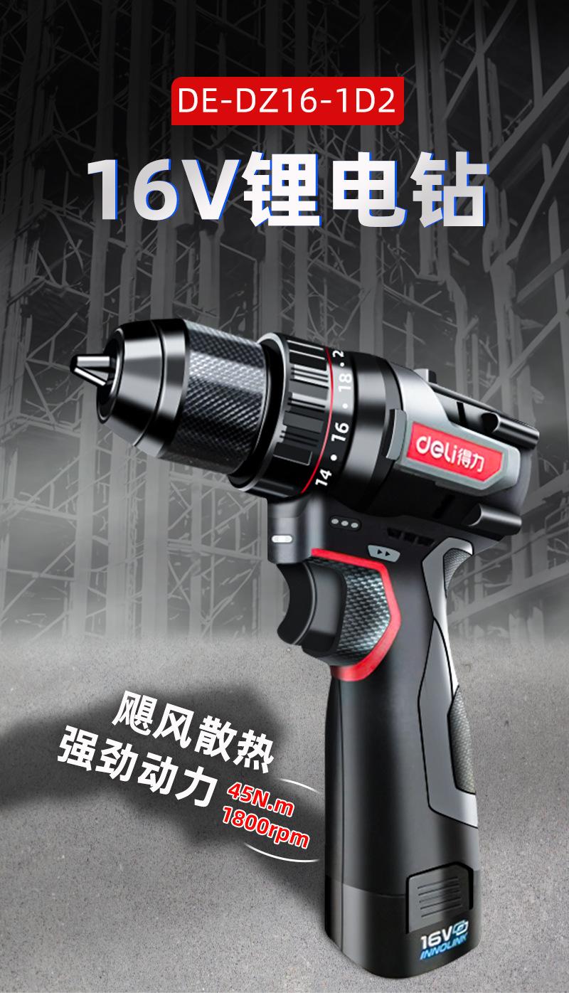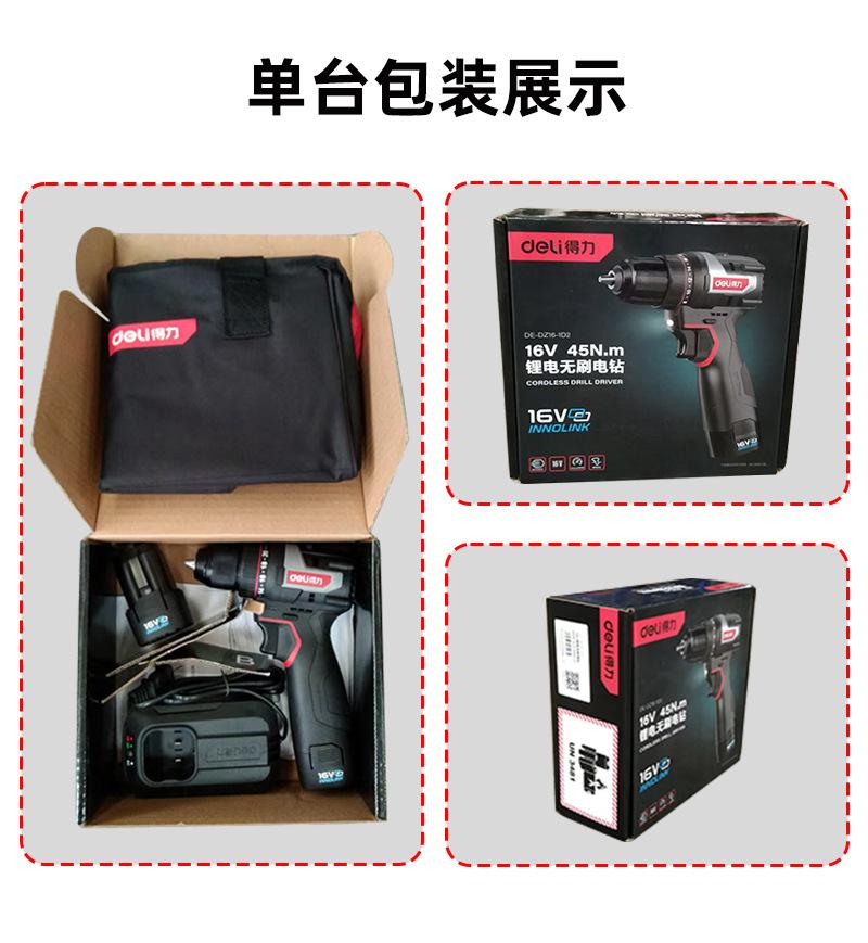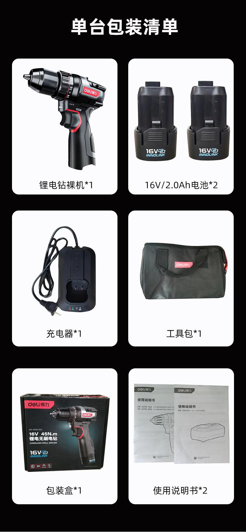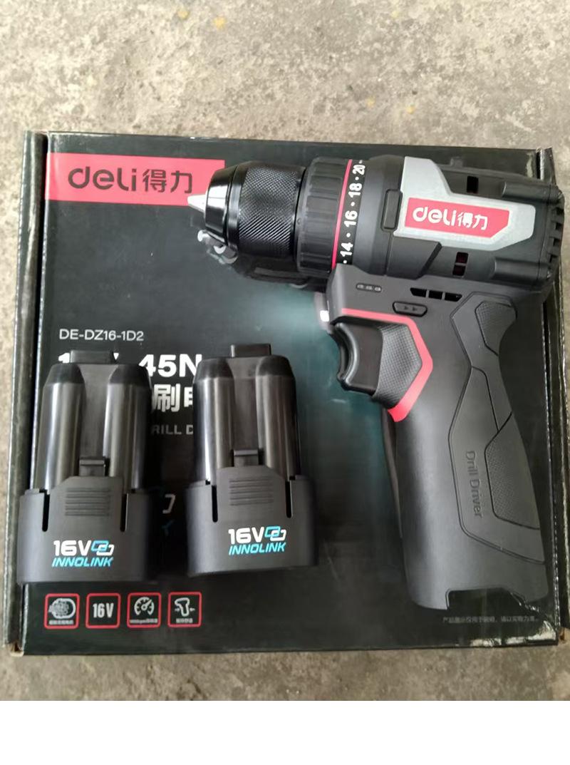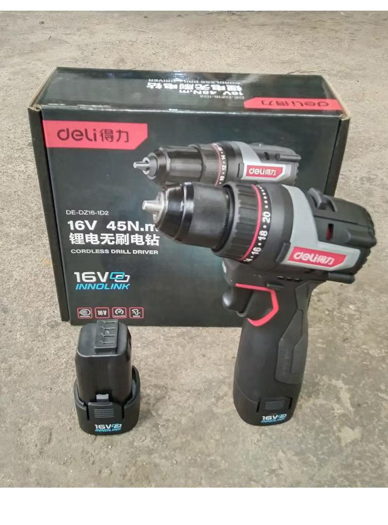 DE-DZ16-1D2 lithium battery brushless electric drill with two electricity and one charge of 2.0Ah,45N torque, send tool kit