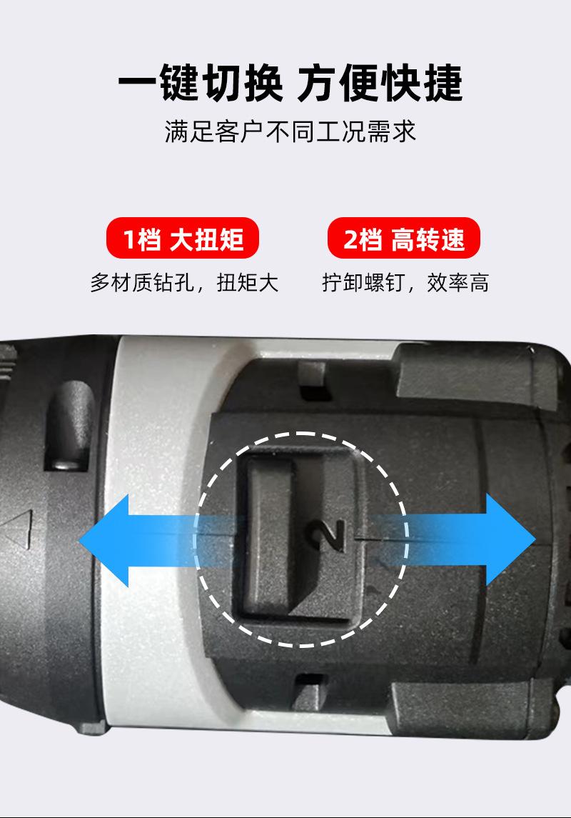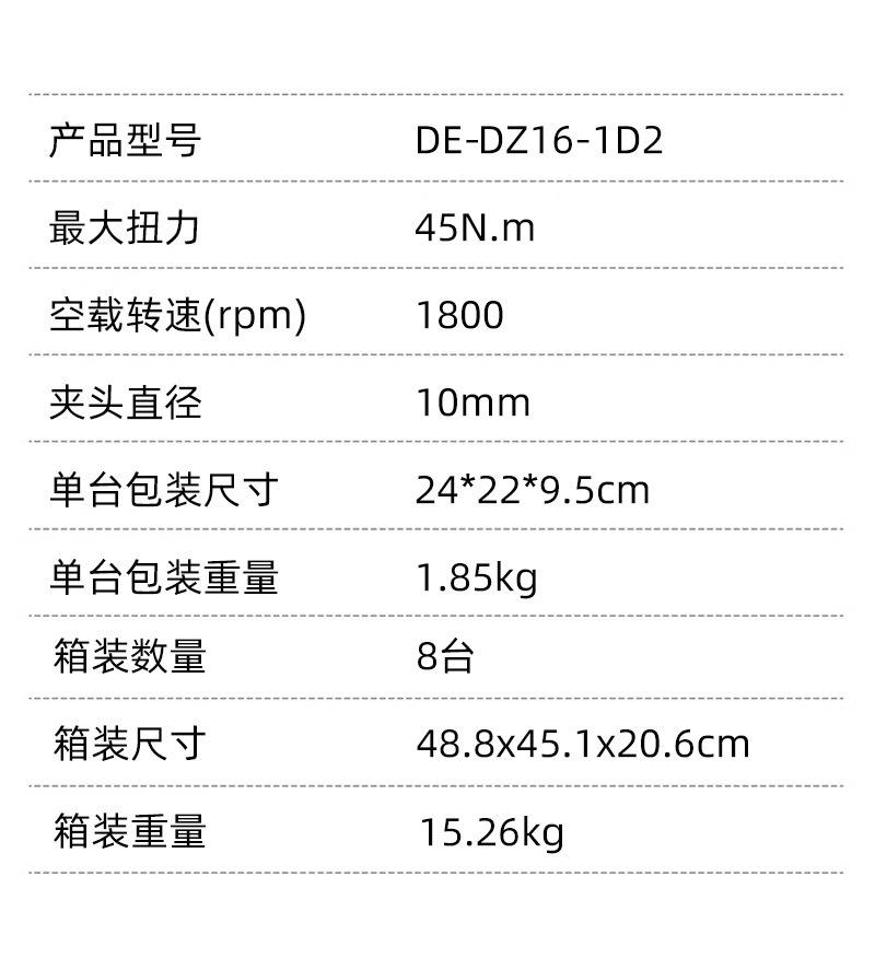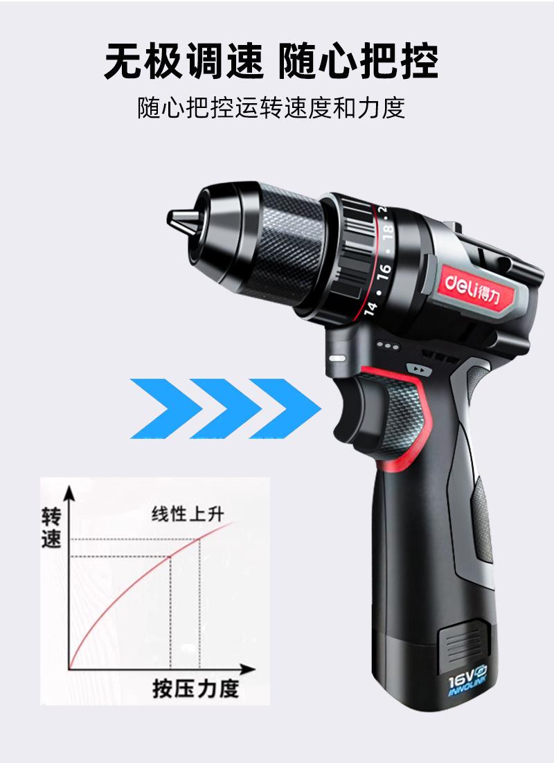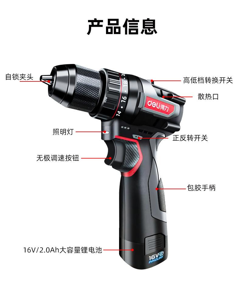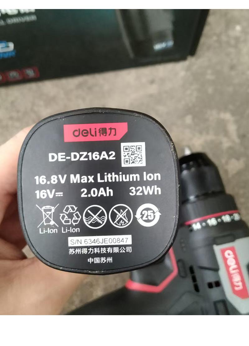 DE-DZ16-1D2 lithium battery brushless electric drill with two electricity and one charge of 2.0Ah,45N torque, send tool kit