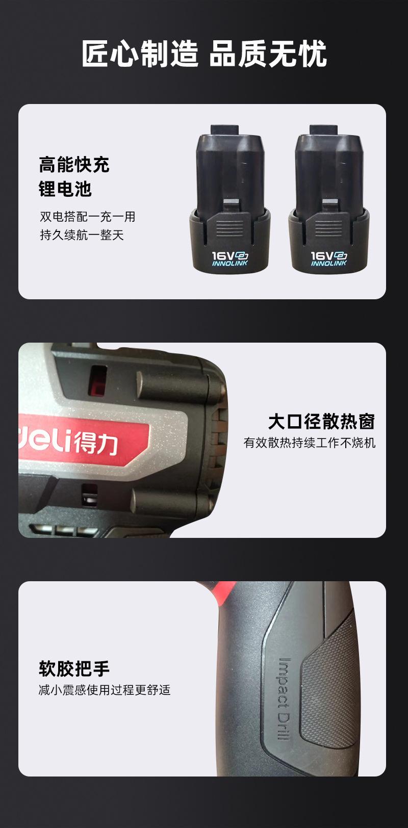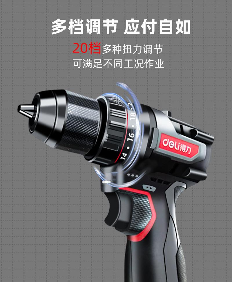 Taladro eléctrico Deli, destornillador eléctrico, herramienta de torneado de impacto doméstica de litio, taladro manual multifuncional, taladro eléctrico manual recargable.