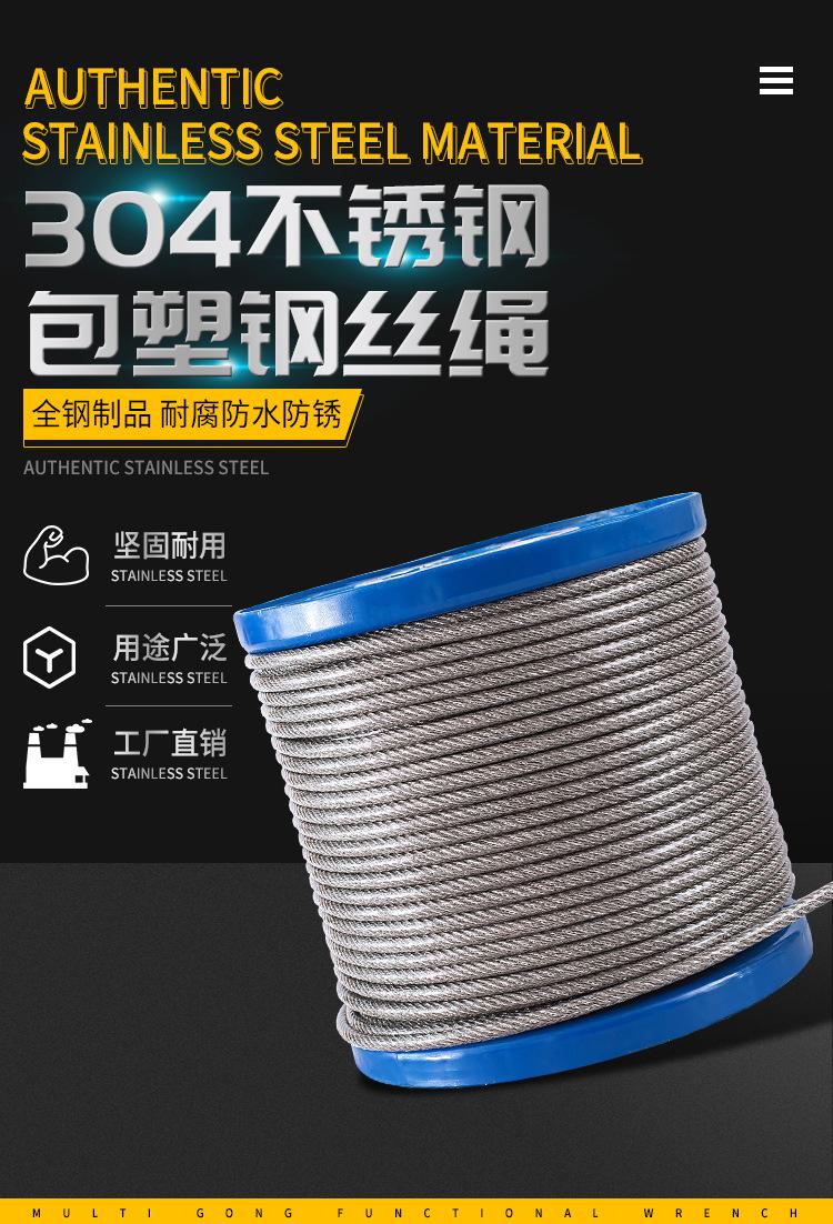 Cable de acero inoxidable 304 para tendedero, red para sombrilla, cable de alambre recubierto de plástico, cable de alambre suave y pequeño recubierto de goma.