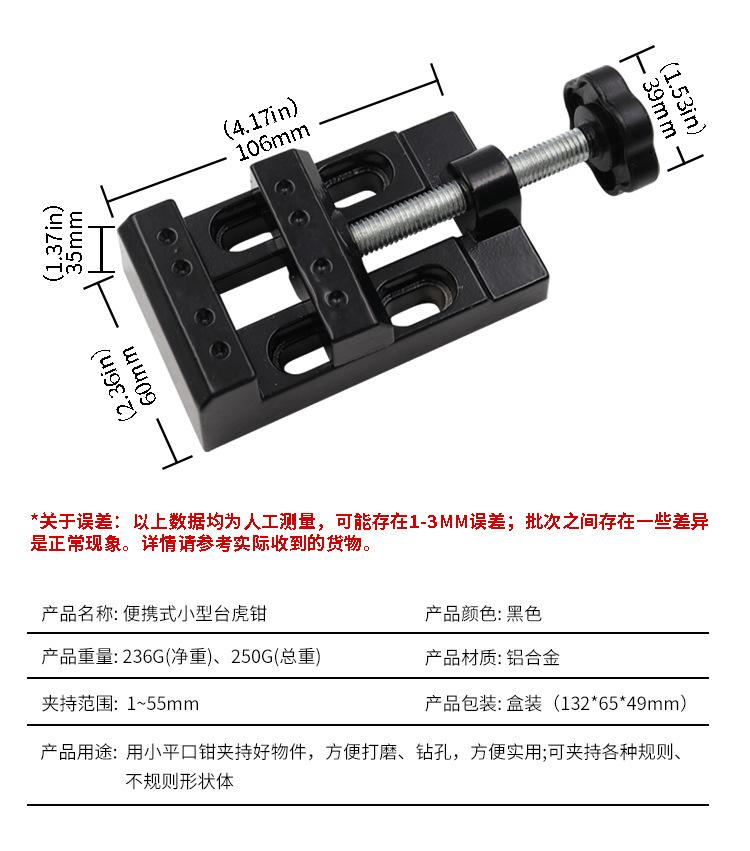 Pinzas de mandíbula plana, sujeción 1-55mm, tornillo de aleación de aluminio + plástico