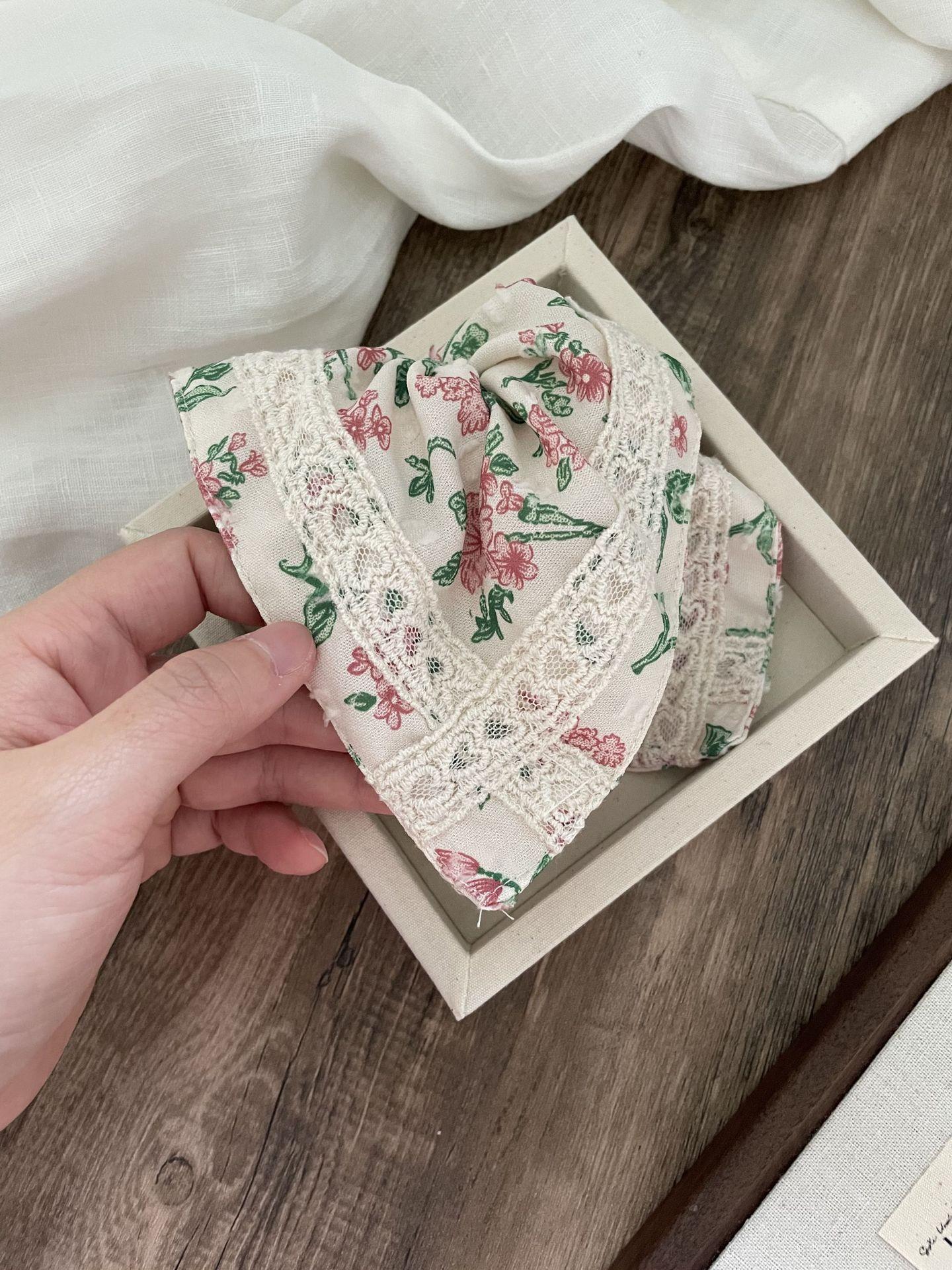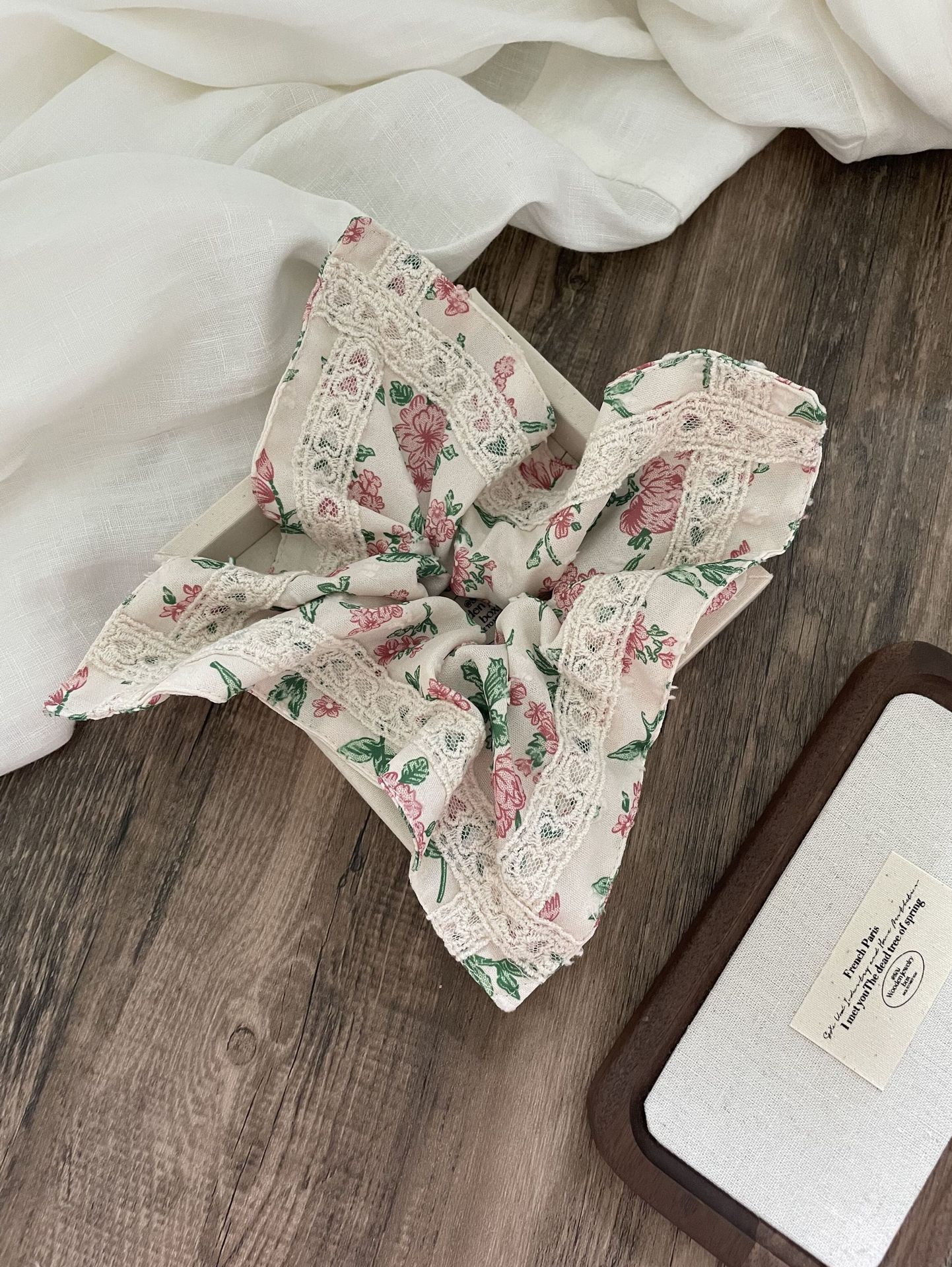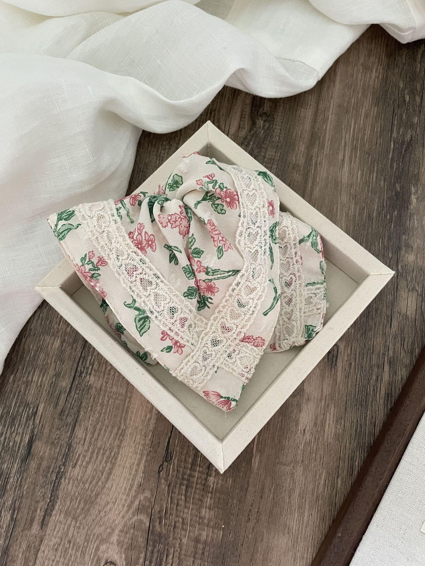 2024 Nuevo Anillo para el Cabello Cuadrado de Encaje Floral Pequeño Estilo Pastoral Retro Artístico Accesorios para el Cabello Pequeños Frescos y Hermosos para Mujeres
