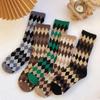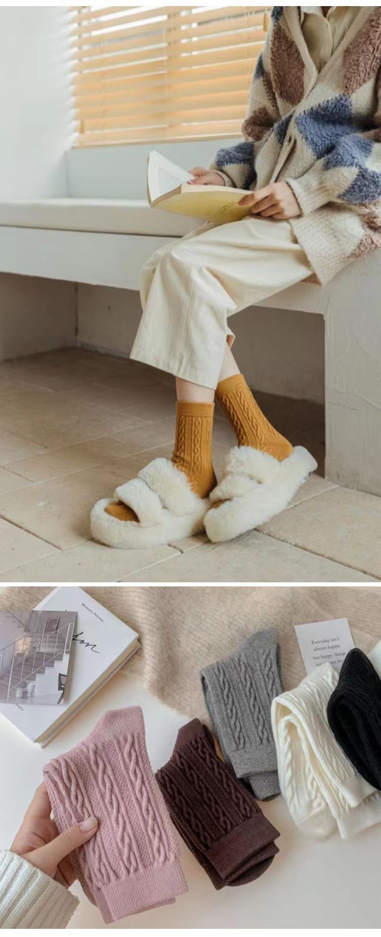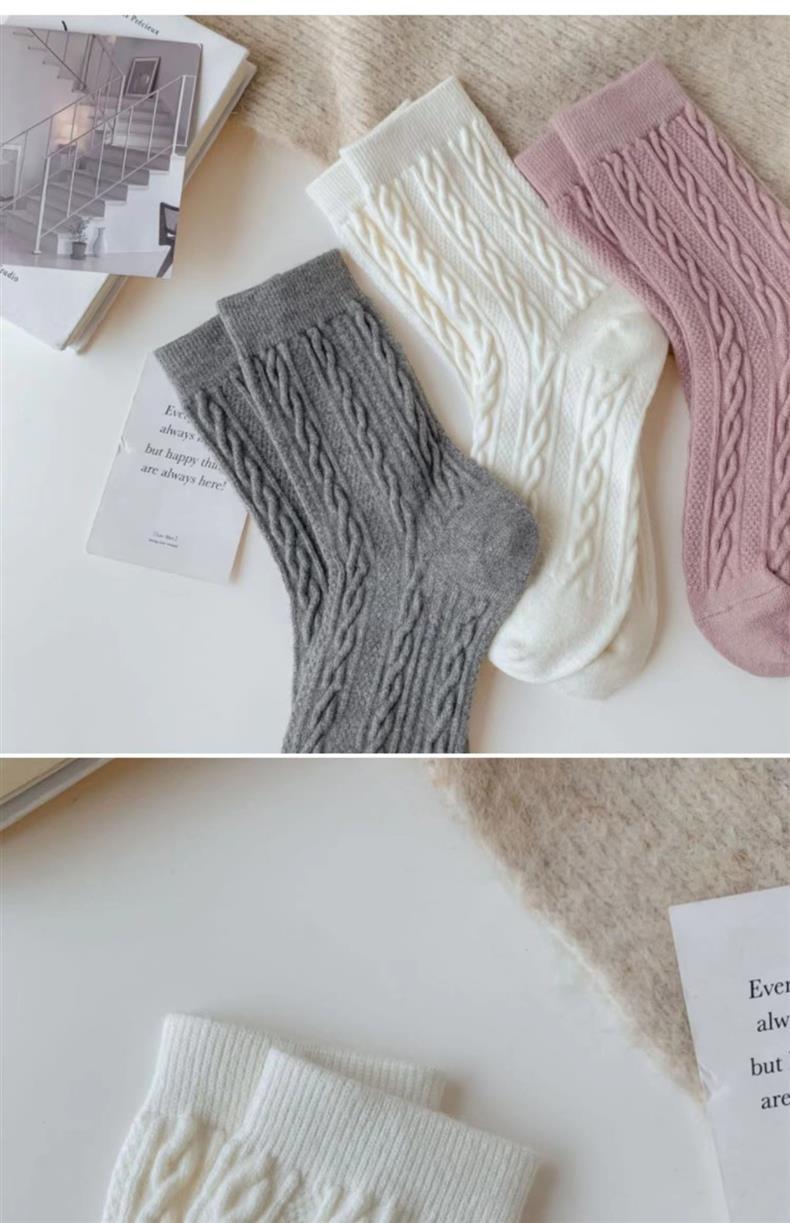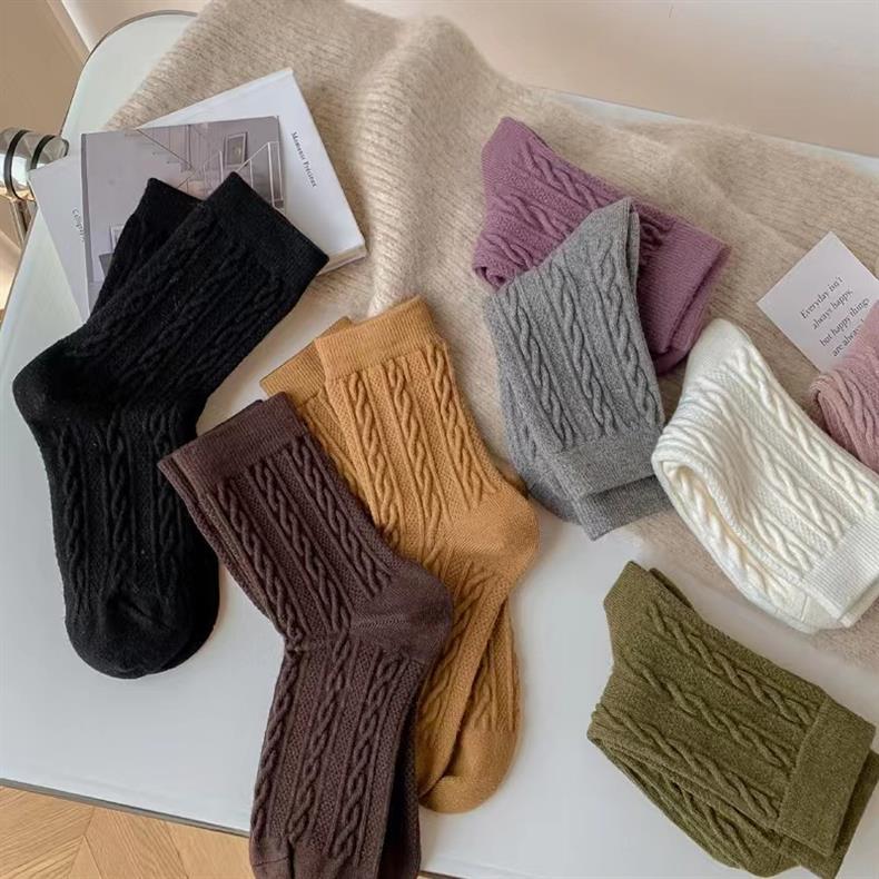Calcetines gruesos hasta la mitad de la pantorrilla para mujer para otoño e invierno, calcetines largos de lana de punto trenzado de color sólido, calcetines largos lindos japoneses, casuales y versátiles