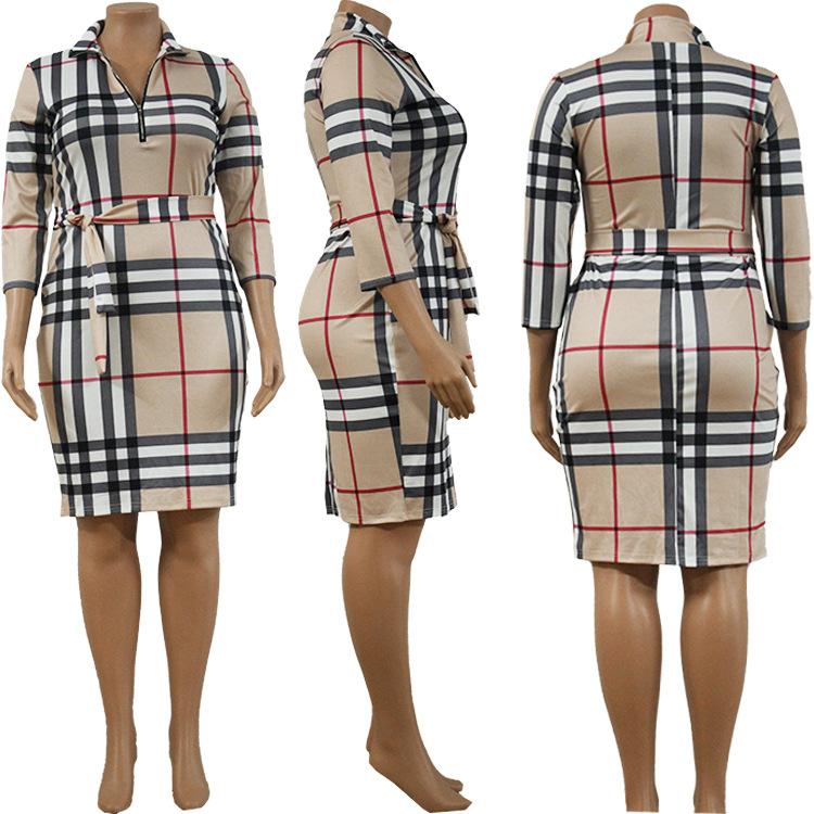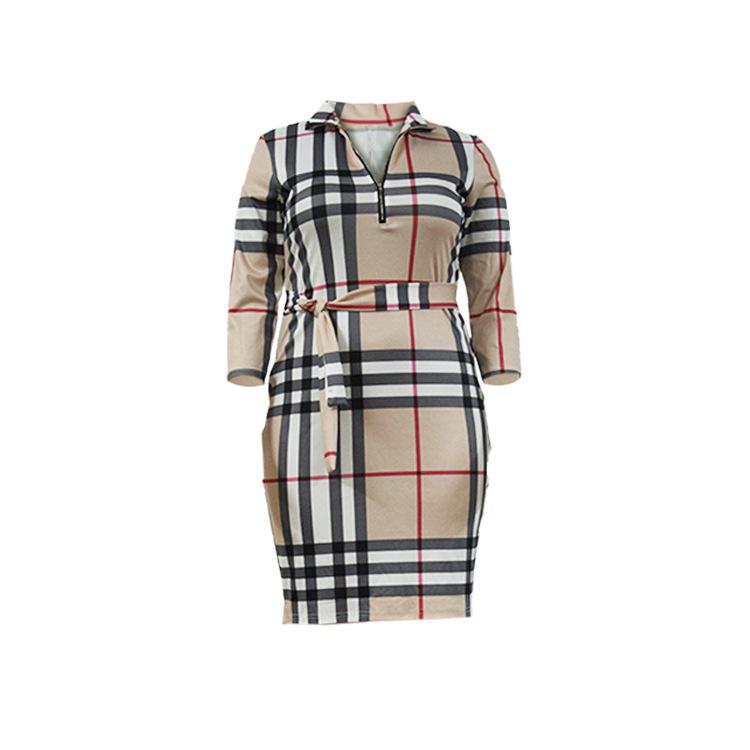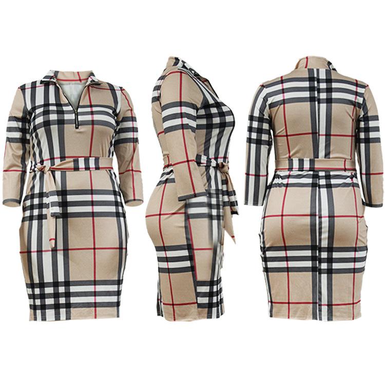 Ropa de mujer europea y americana de moda 2020, cintura delgada, cuadros con cordones, bolso de cadera, vestido de talla grande, vestido recto, homenaje oficial