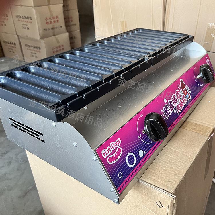 Máquina Asadora de Salchichas Dorada Crujiente Salchicha Puesto Multifuncional Comercial Gas Máquina Eléctrica para Hot Dogs Jamón Equipo Rojo de Internet