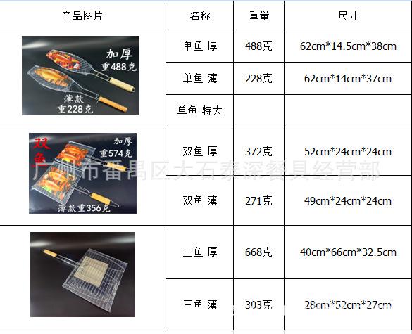Single fish thickened 488g, Single fish thin section 228g, Extra Large