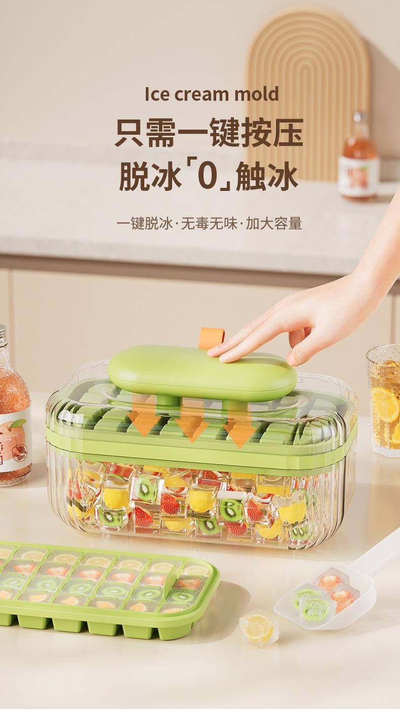 Molde para cubitos de hielo nuevo grado alimenticio con tapa molde para cubitos de hielo prensado congelado refrigerador casero caja de hielo casera