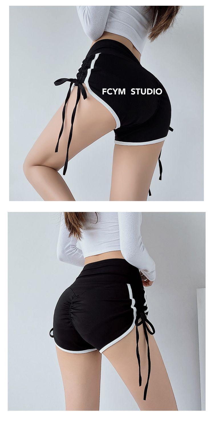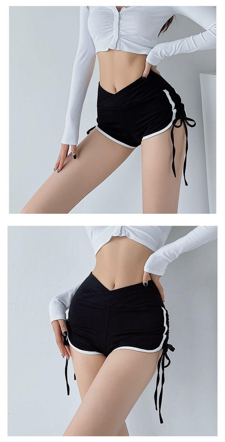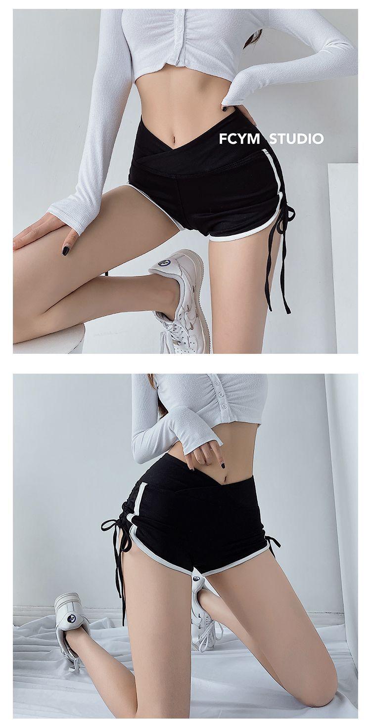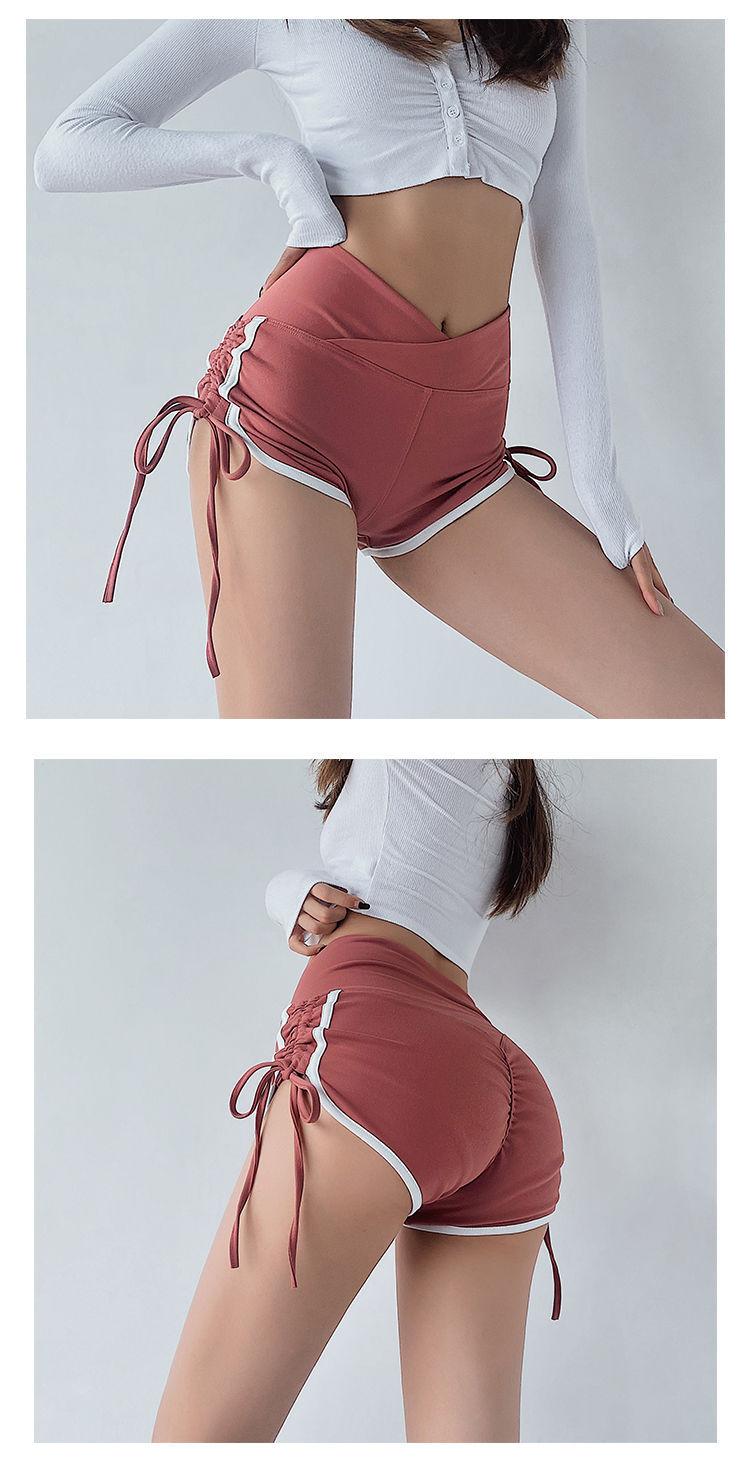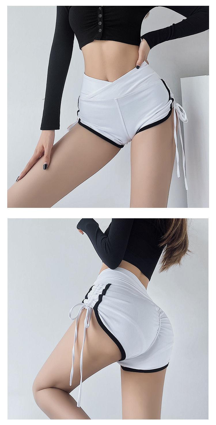 Pantalones cortos deportivos ajustados de talle alto europeos y americanos para mujer, verano, chica sexy, con cordón ajustable, fitness, casual, yoga, pantalones cortos sexys