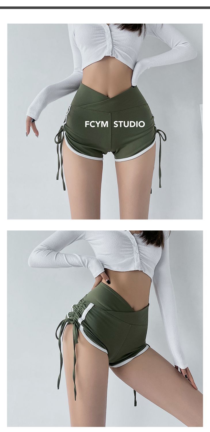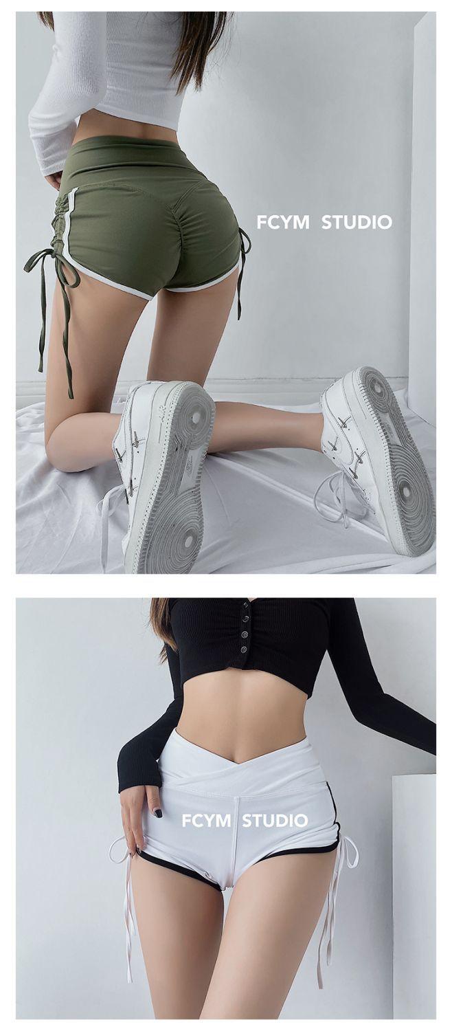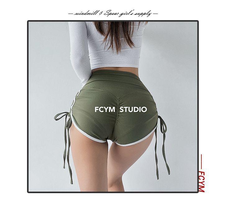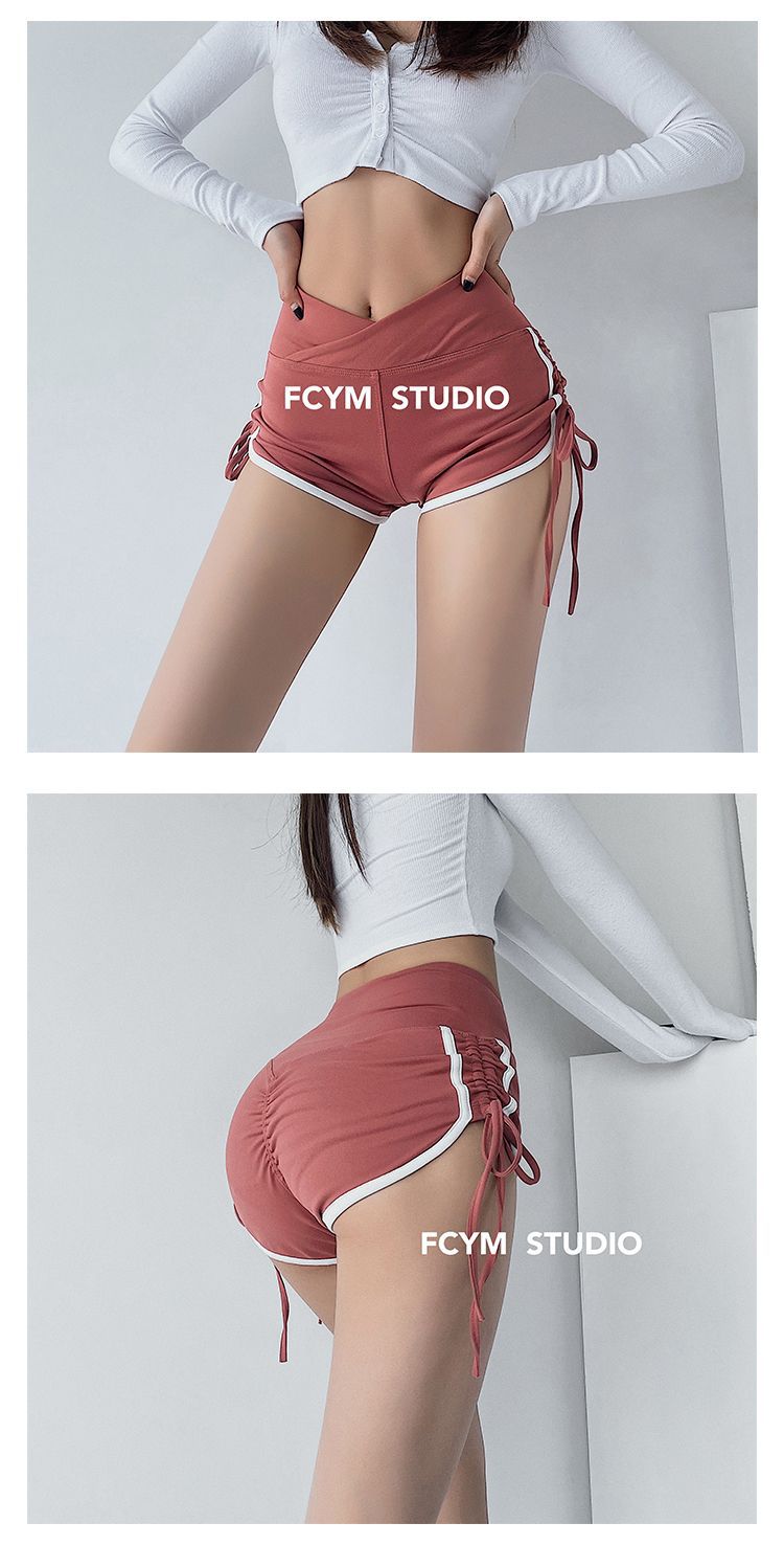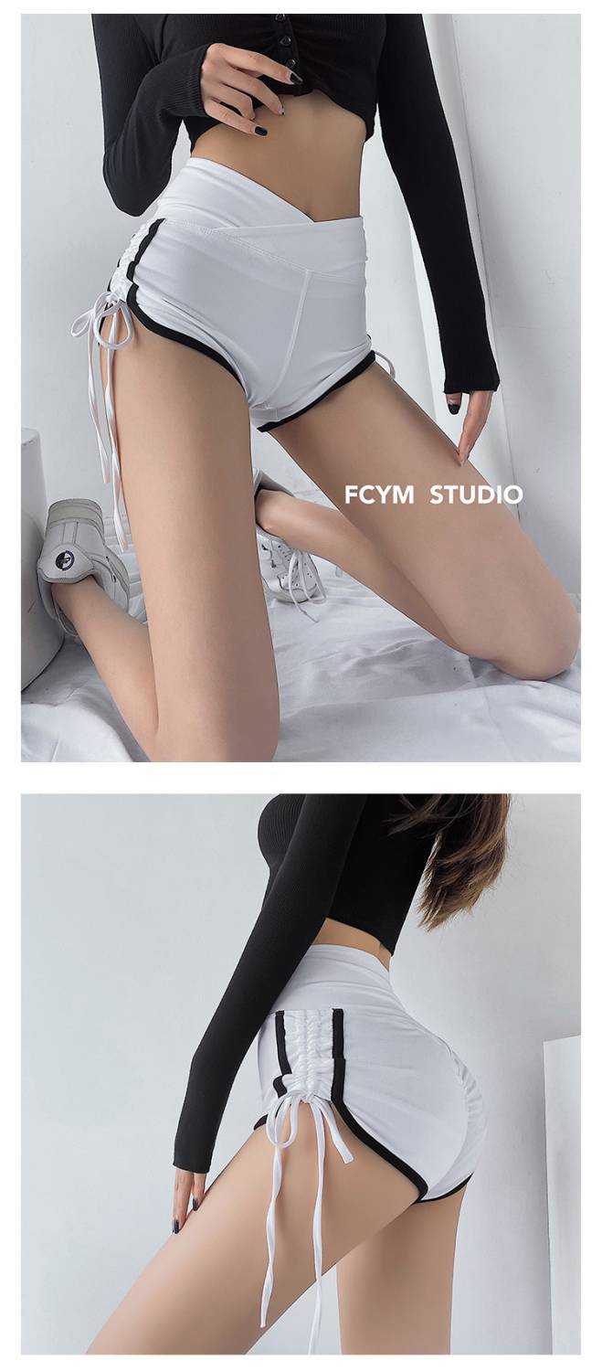 Pantalones cortos deportivos ajustados de talle alto europeos y americanos para mujer, verano, chica sexy, con cordón ajustable, fitness, casual, yoga, pantalones cortos sexys