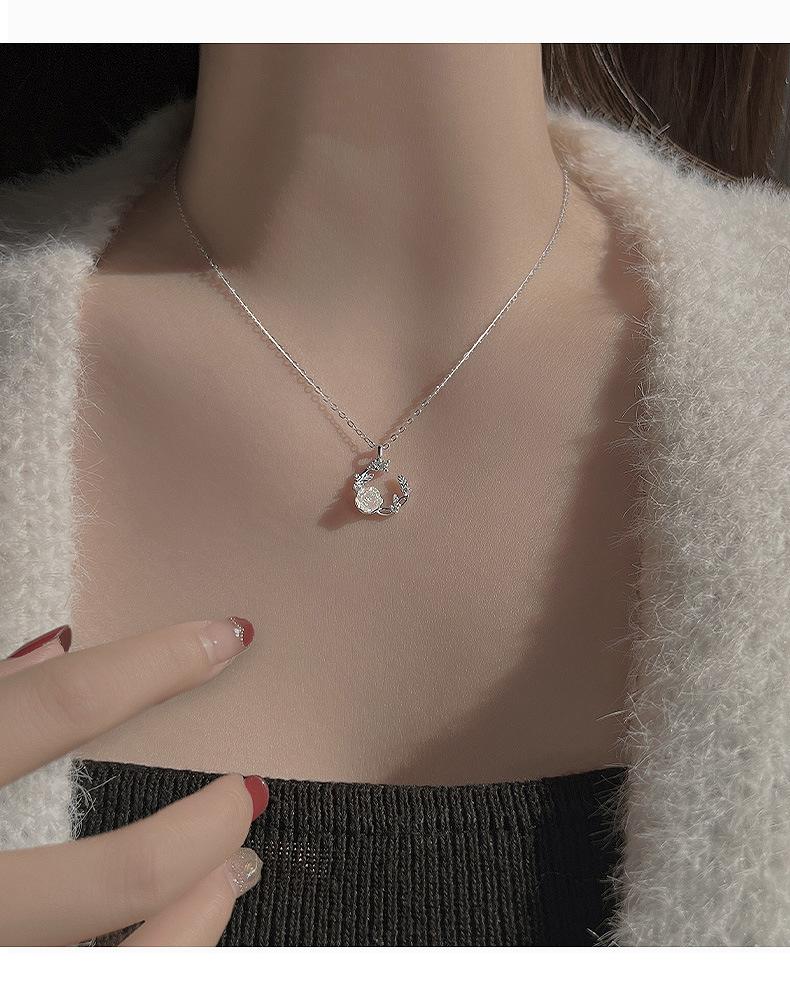 Collar de flor de luna para mujer 2024, nuevo, explosivo, ligero, lujoso, diseño de nicho, otoño e invierno, combina con todo, elegante, color mágico, cadena de lana.