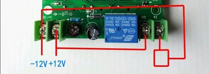 El diagrama de cableado a continuación muestra una entrada de 12 V. El relé de salida equivale a una carga abierta. Para funcionar, necesita otra entrada de alimentación.