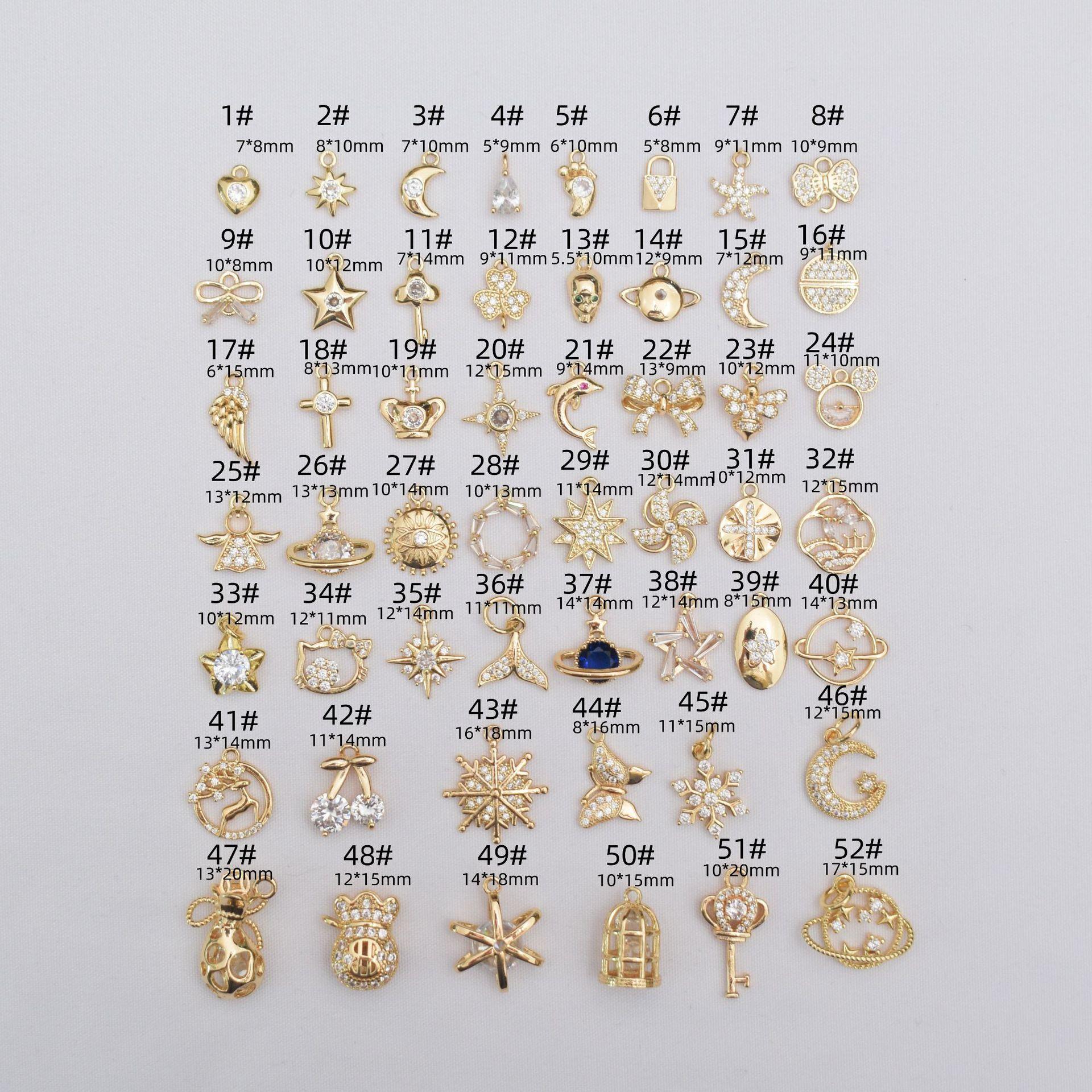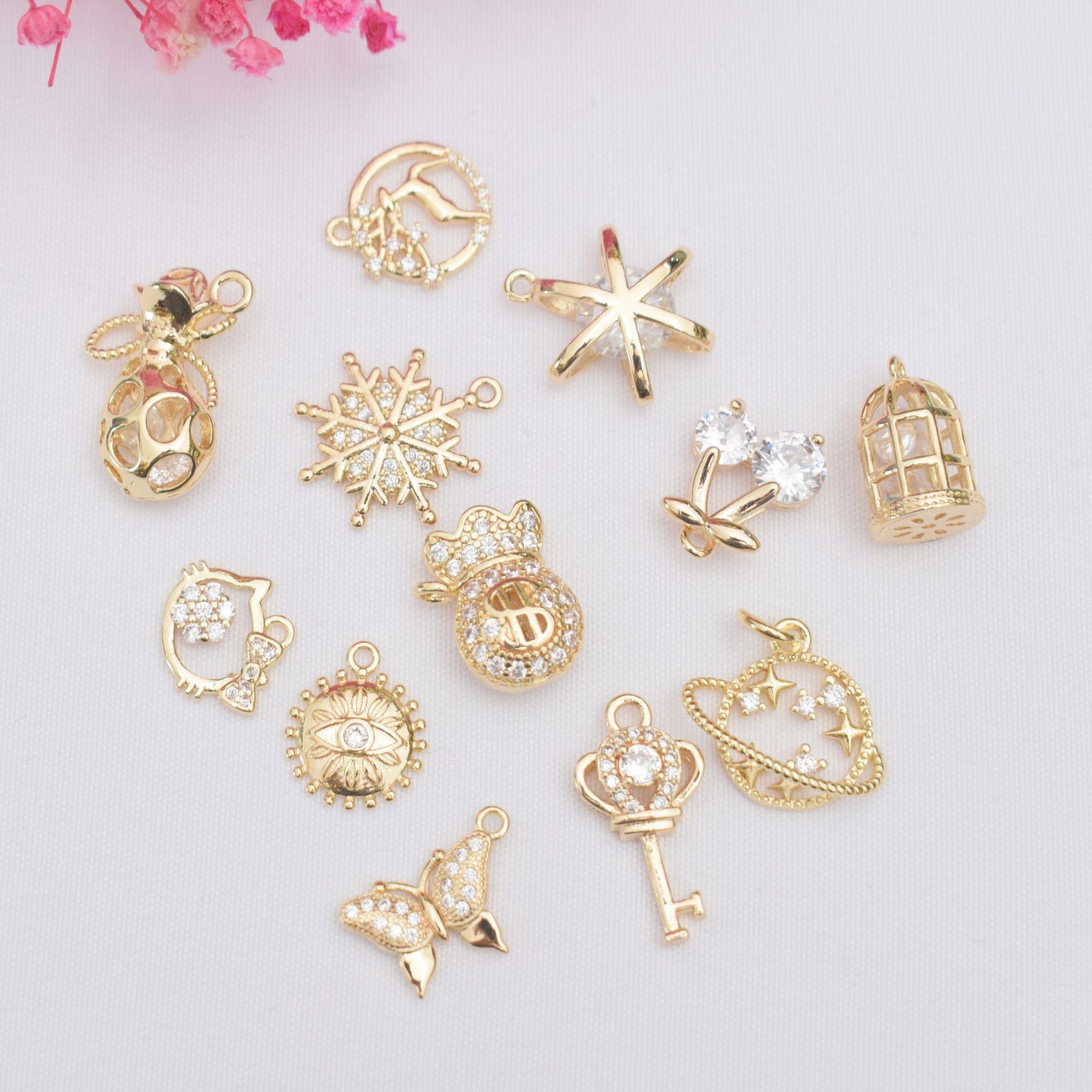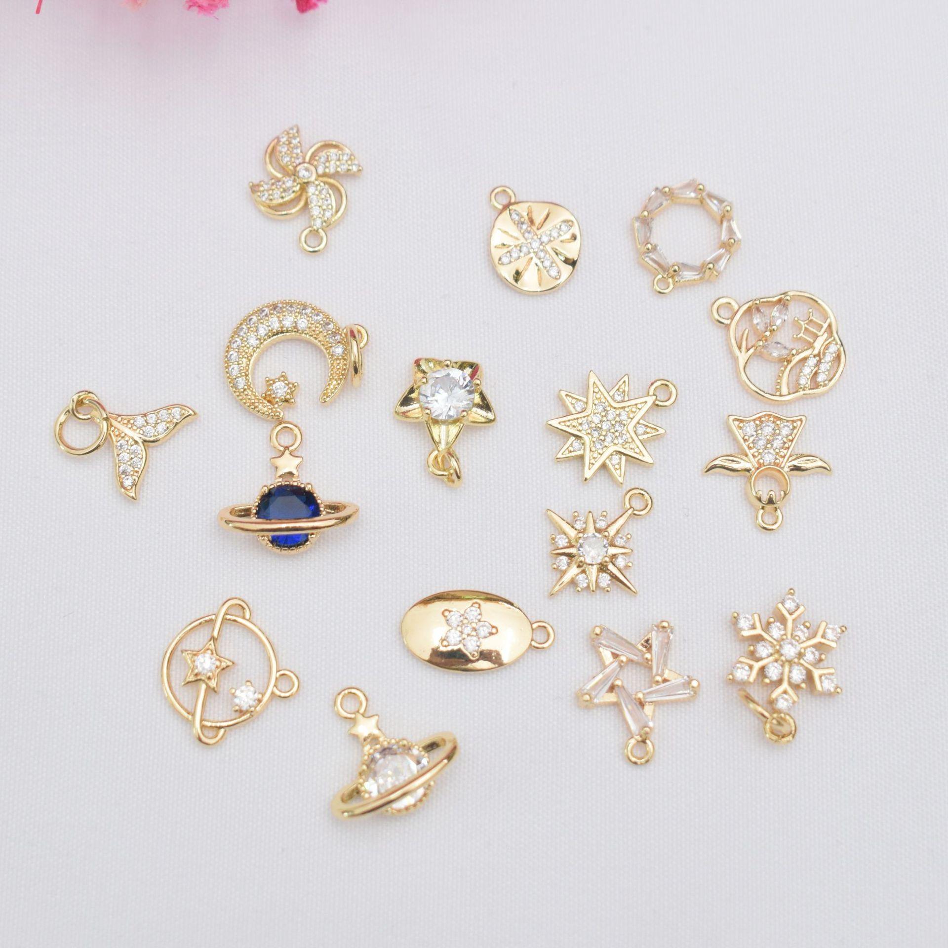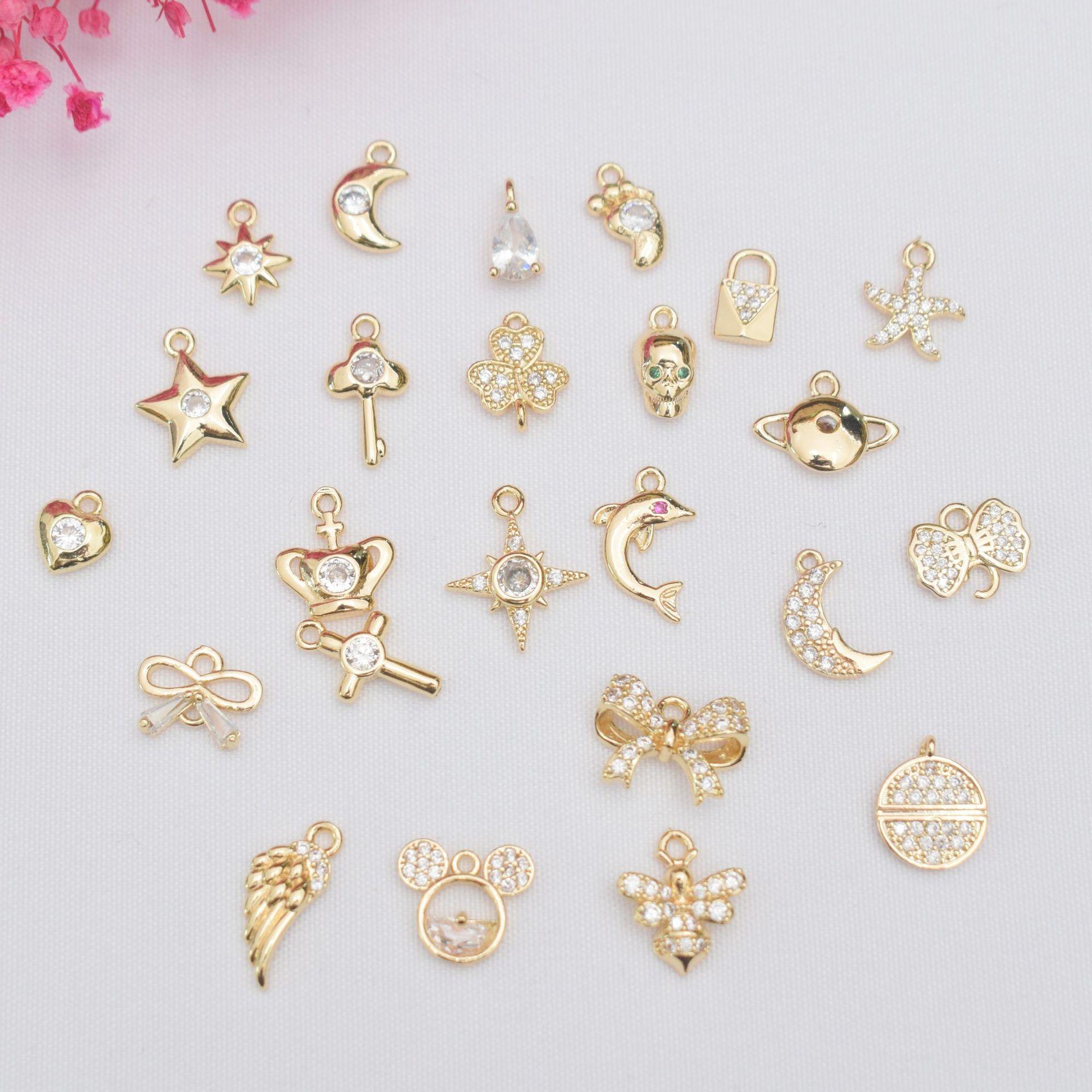 Colgante de pulsera de oro de 14 quilates que conserva el color, con incrustaciones de accesorios de circonio, estrella, luna, colgante de mariposa, accesorios con cuentas hechos a mano para bricolaje