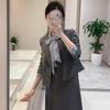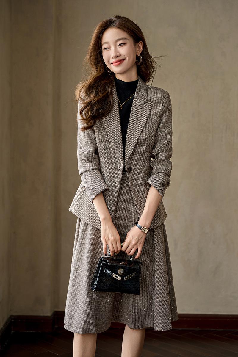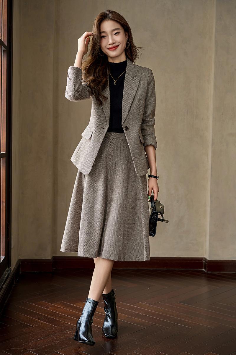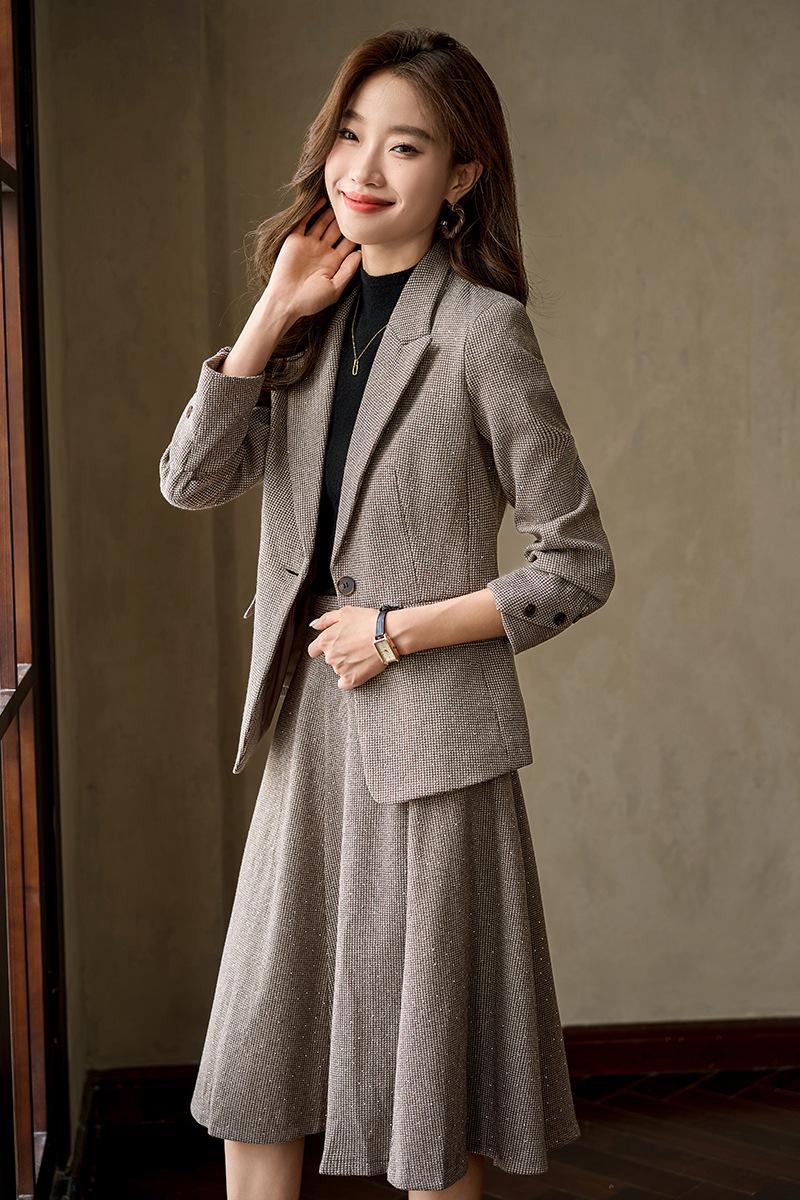 Traje gris, traje de mujer para primavera y otoño, para estudiantes universitarios, para entrevistas, con falda plisada pequeña, temperamento, ropa formal profesional.