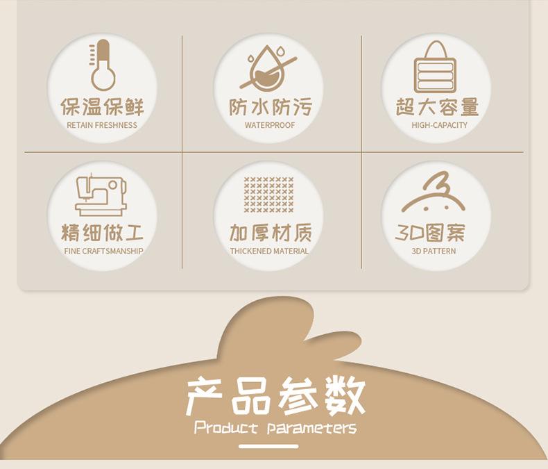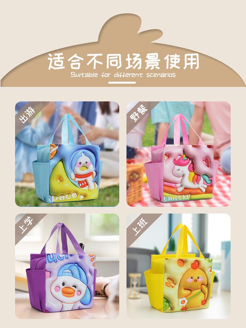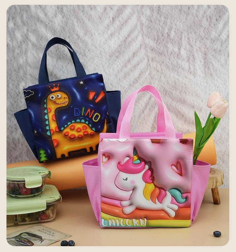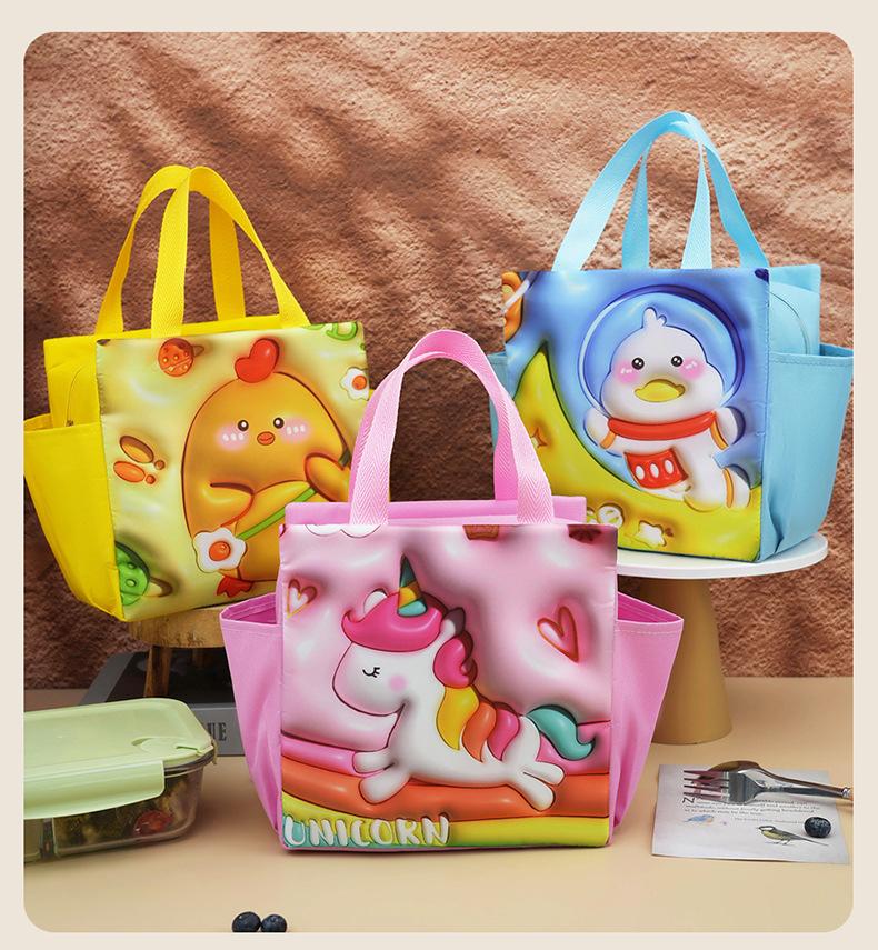 Bolsa de almuerzo de dibujos animados de gran capacidad, bolsa de hielo fresco espesada con papel de aluminio, bolsa de almuerzo portátil, bolsa de aislamiento para lonchera