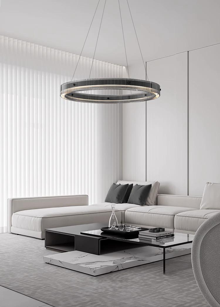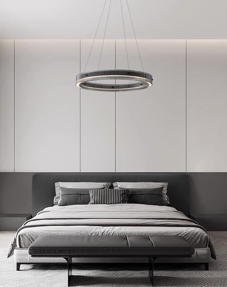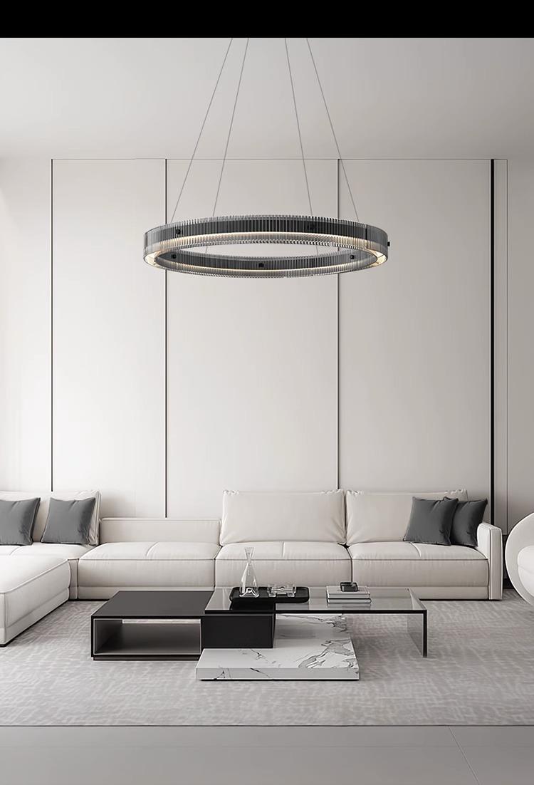Lámpara de araña de lujo para sala de estar, minimalista, moderna, simple, de alta gama, diseño negro, con sentido de arriba a abajo, luminosa, para comedor, dormitorio, lámpara de anillo
