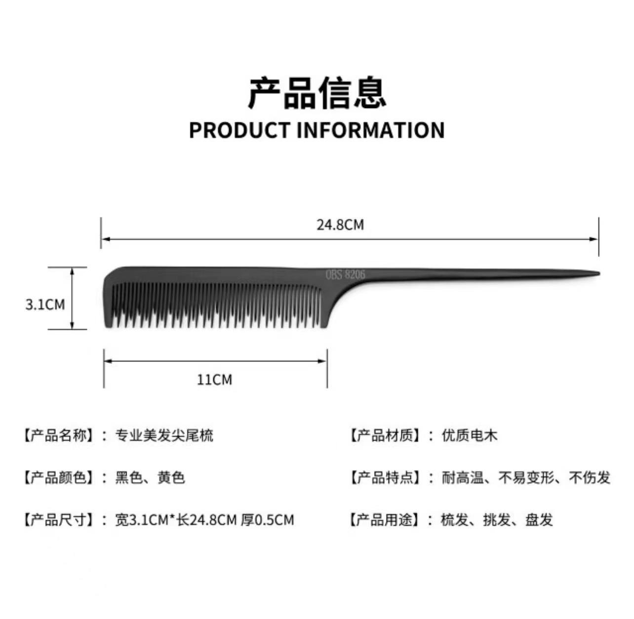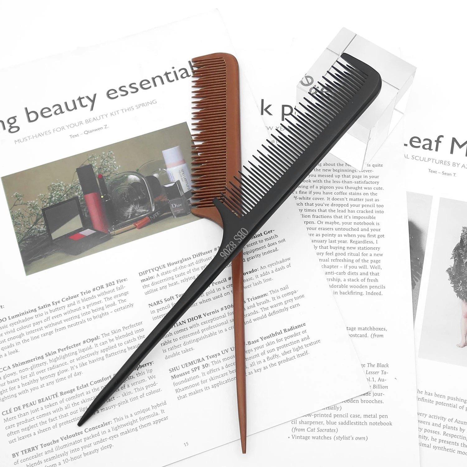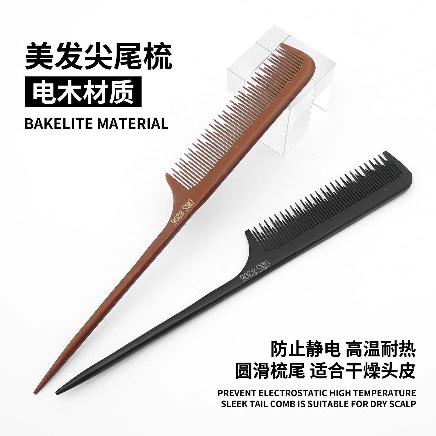 Peine de cola puntiaguda para maquillador de cabello, peine especial de dientes finos y densos, peine de punta puntiaguda, peine de madera antiestático para cabello de dama.